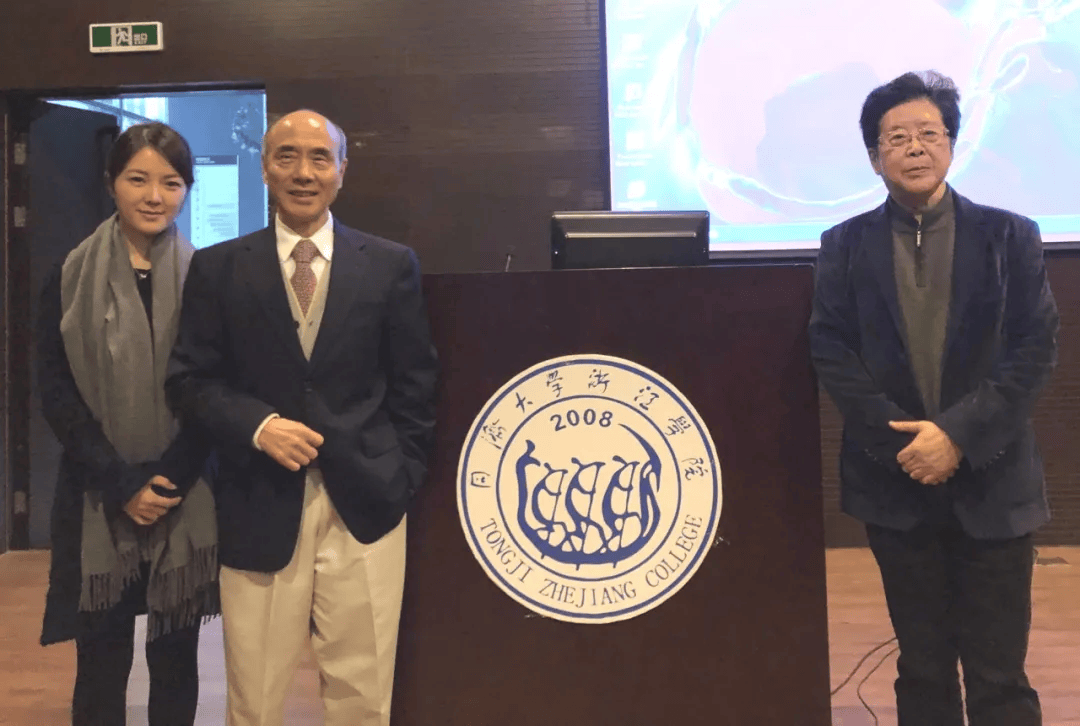 George Shen(中)前往同济大学授课,与同济大学朱静昌教授(右)合影。