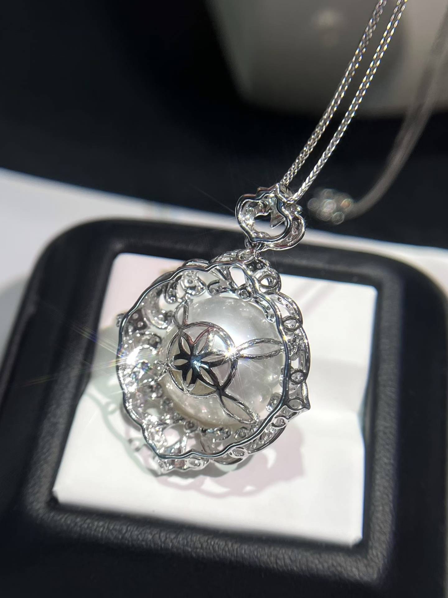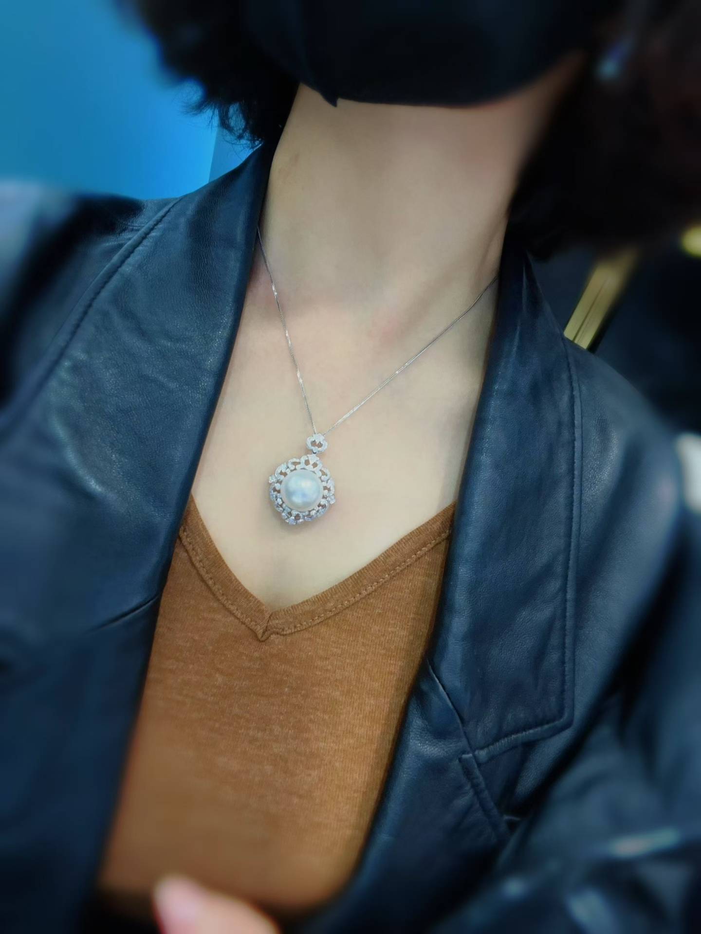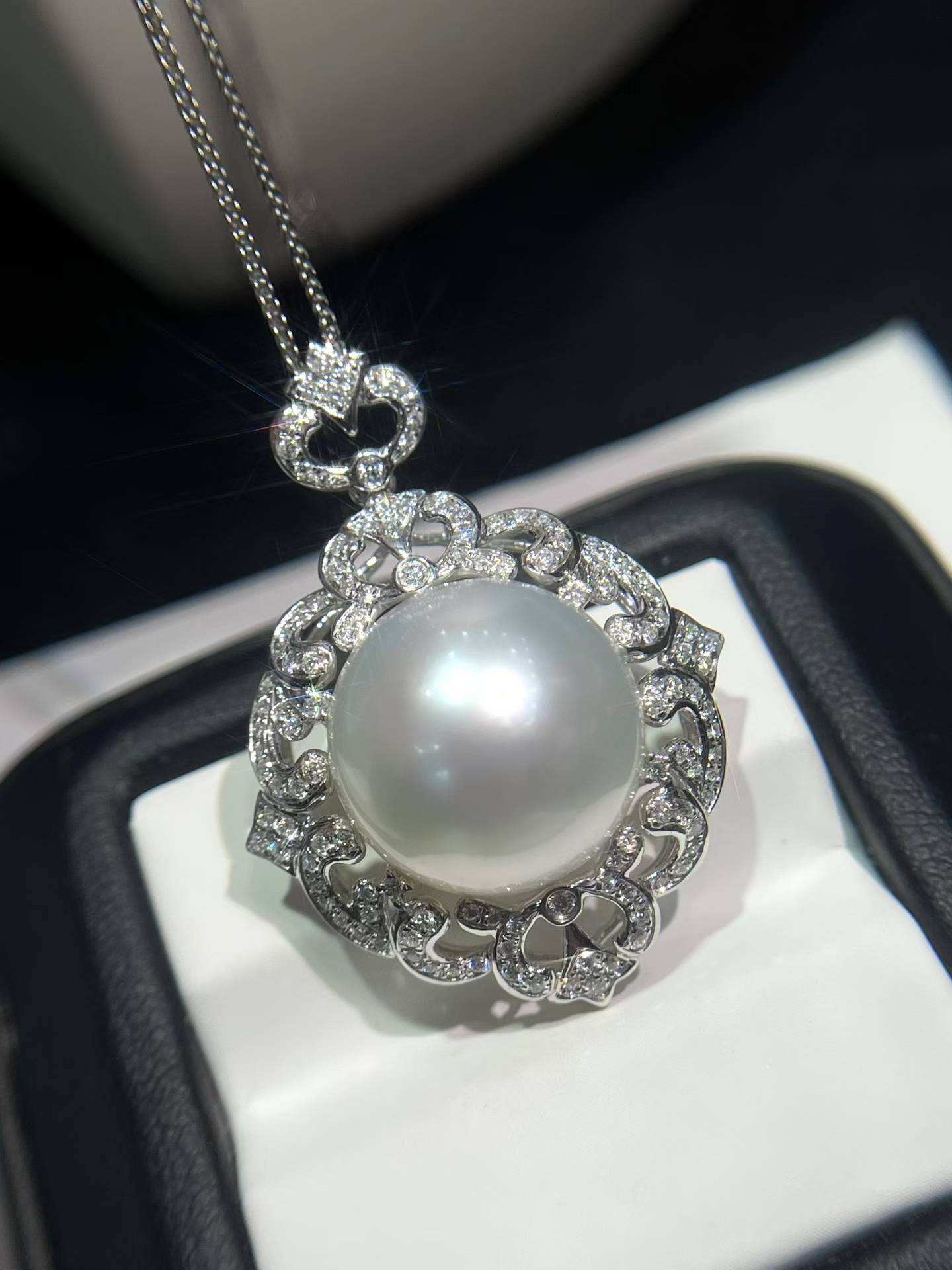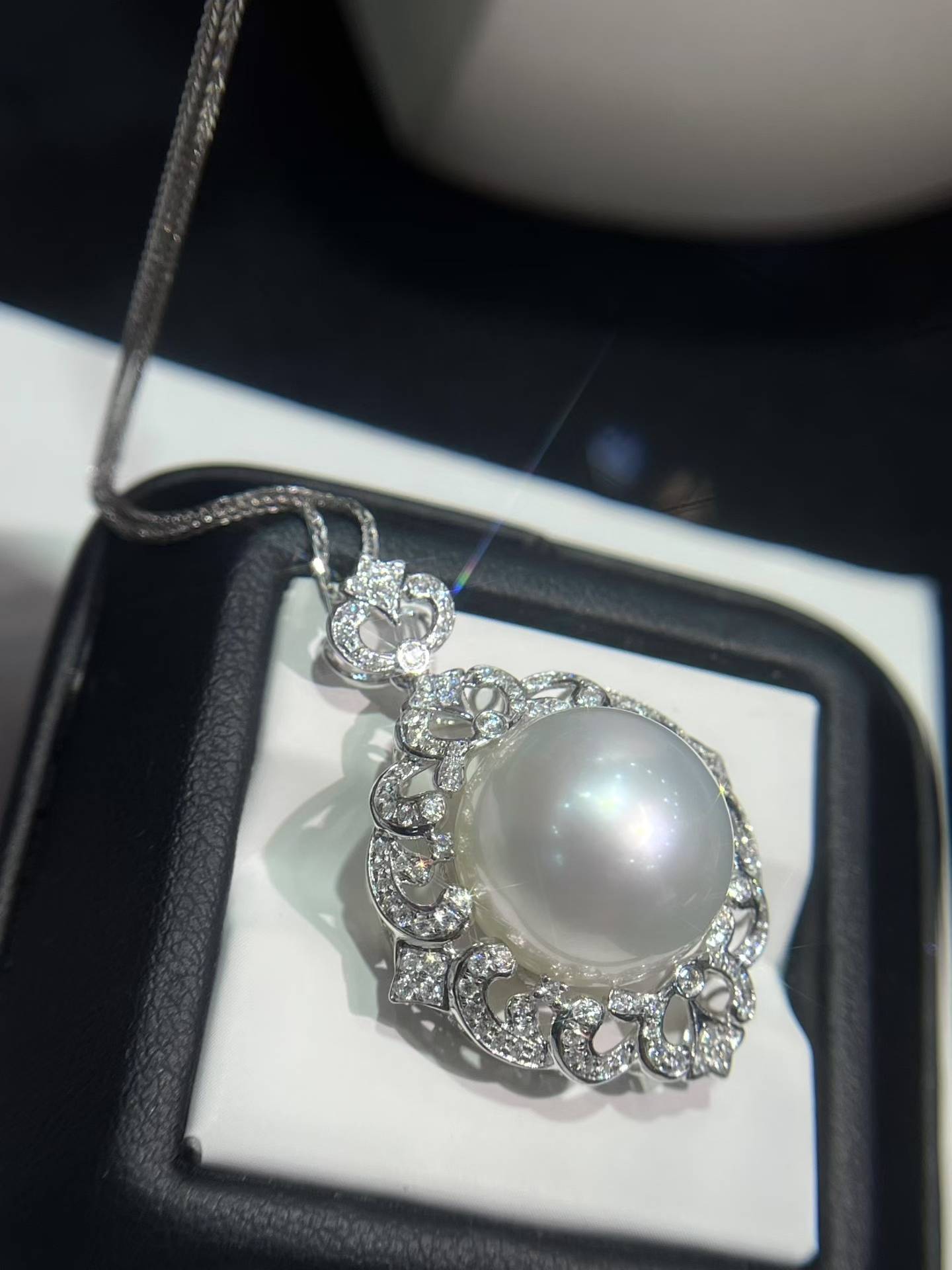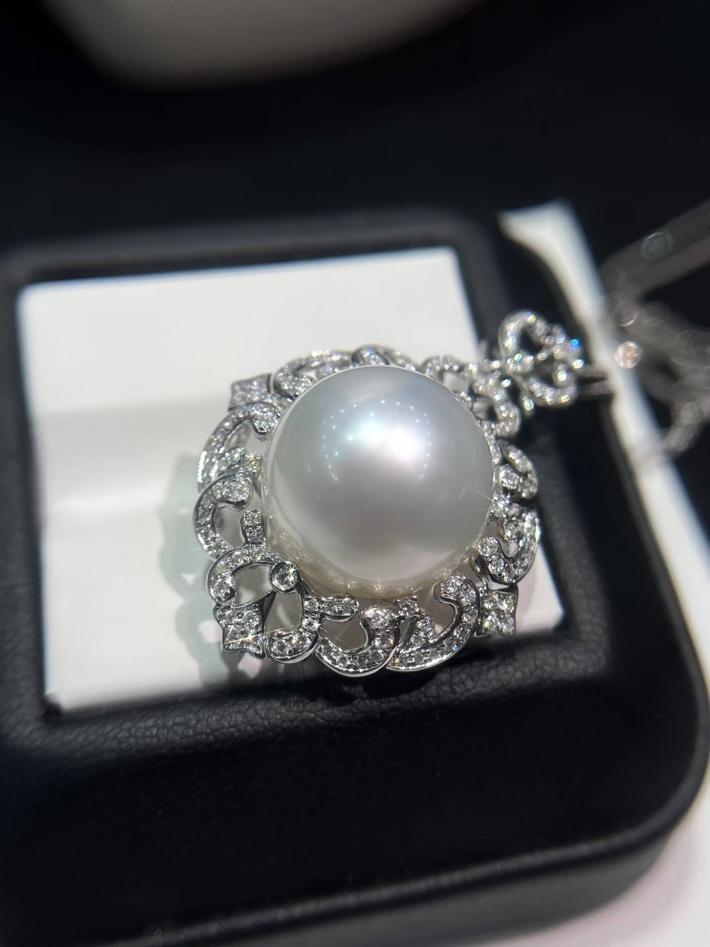 精选高品质✨珠光宝气,流露出高贵典雅的气息🇦🇺澳白珍珠吊坠15-16𝐦𝐦满钻💎镶18k金大气座镶款整体干净 白光光泽 金重4.2克,💎0.638ct