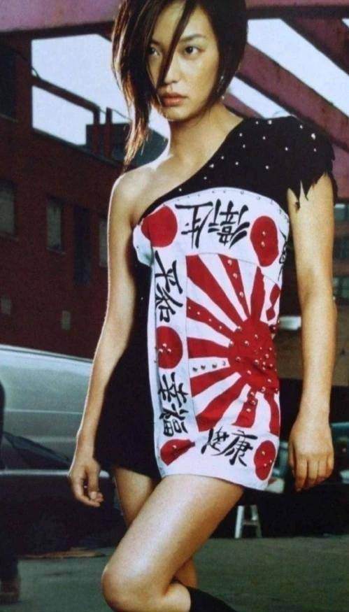 2001年她为美国杂志拍摄的一组照片引爆舆论,身上那件酷似日本军旗的短裙,深深刺痛了国人的心。