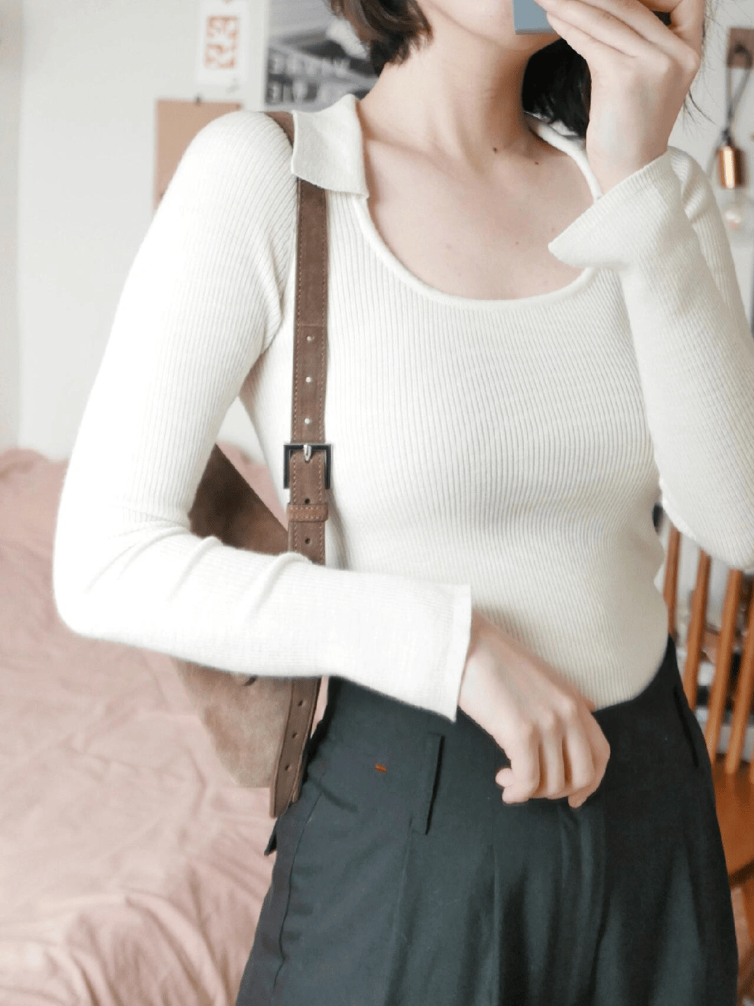 不冷不热的时候当内搭,再加一件外套🧥,简洁大方,整个人气质提升了N个档次。