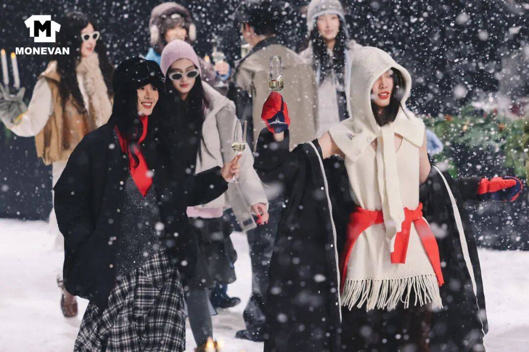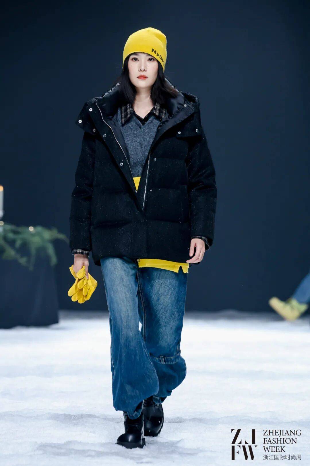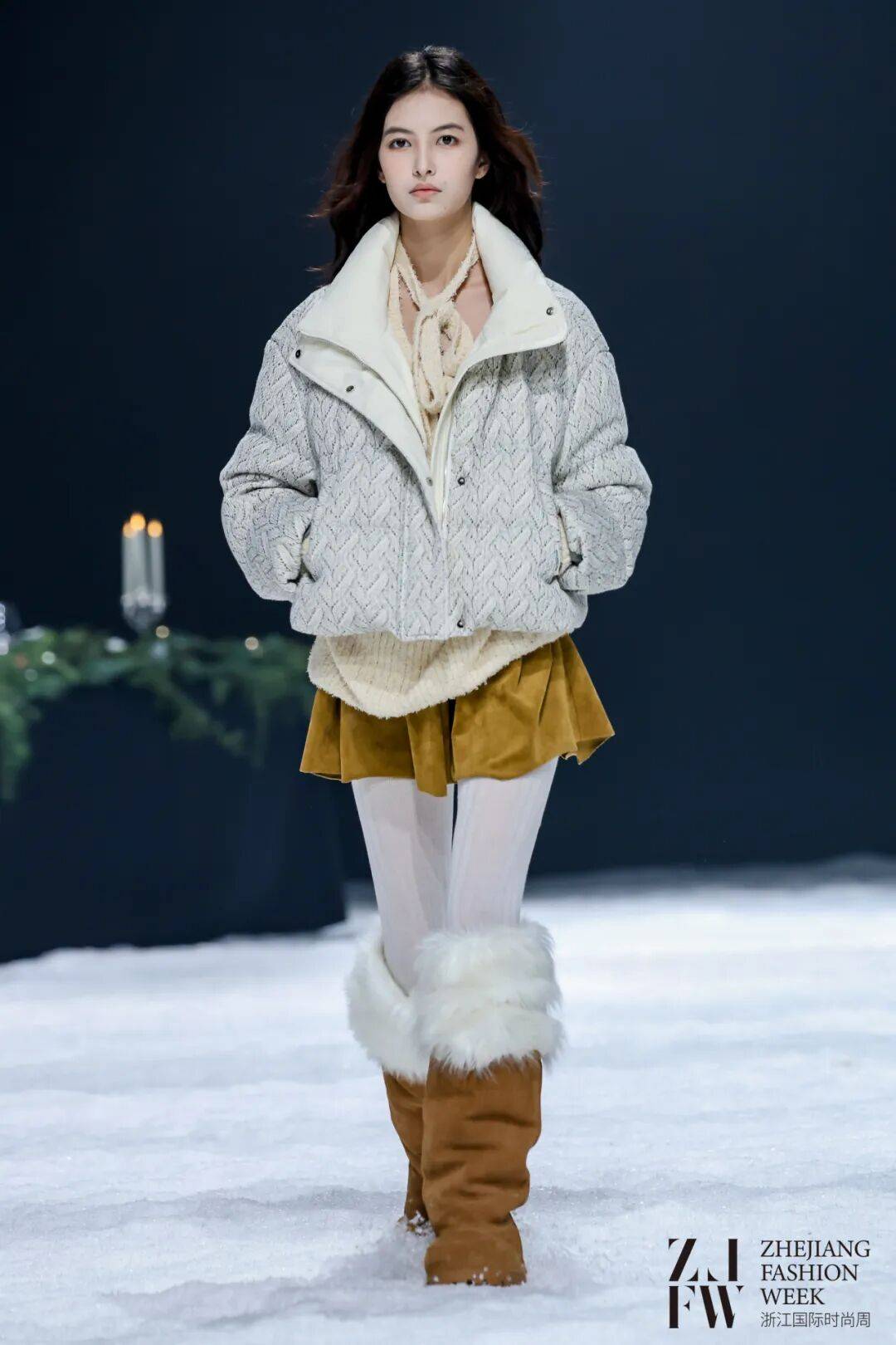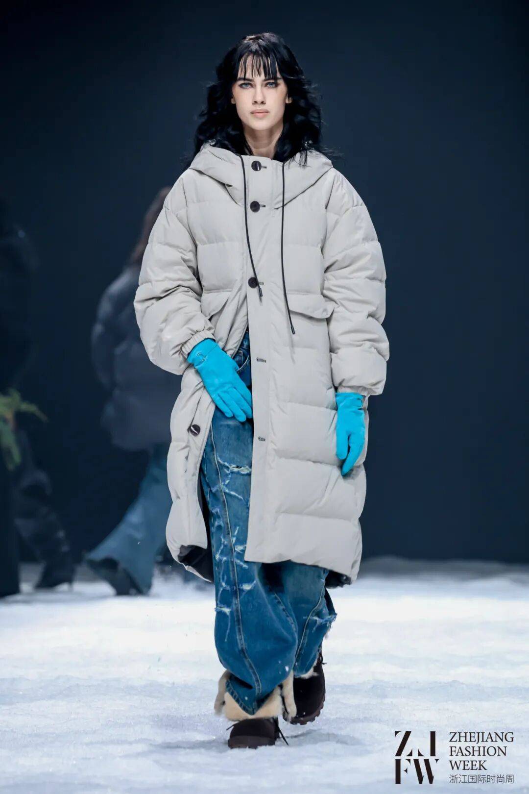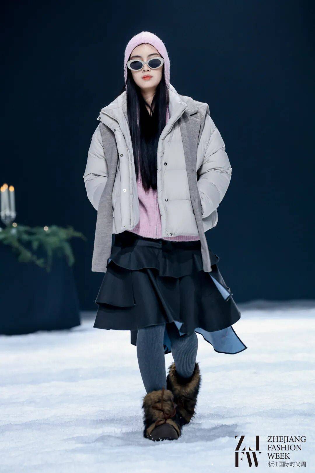 我们本次发布的主题是“冬日雪宴”。之所以设定这个主题,是因为今年的市场环境非常特殊,十月底有一波低温,羽绒服销量很好,但进入十一月初后气温持续偏高,导致行业整体行情不佳。我们想通过这个主题给大家传递信心和希望,即使在“寒冬”环境中,只要坚持做对的事情,依然能实现增长,就像期待杭州的第一场雪一样,带来惊喜和欢乐。设计上,我们希望赋予服装质感,强调原创设计,并极致追求品质,甚至在缝线上都采用了会膨胀的特殊线材,成本虽高出数倍,但力求每个细节都做到最好,让消费者以亲民价格获得堪比高端商品的体验。