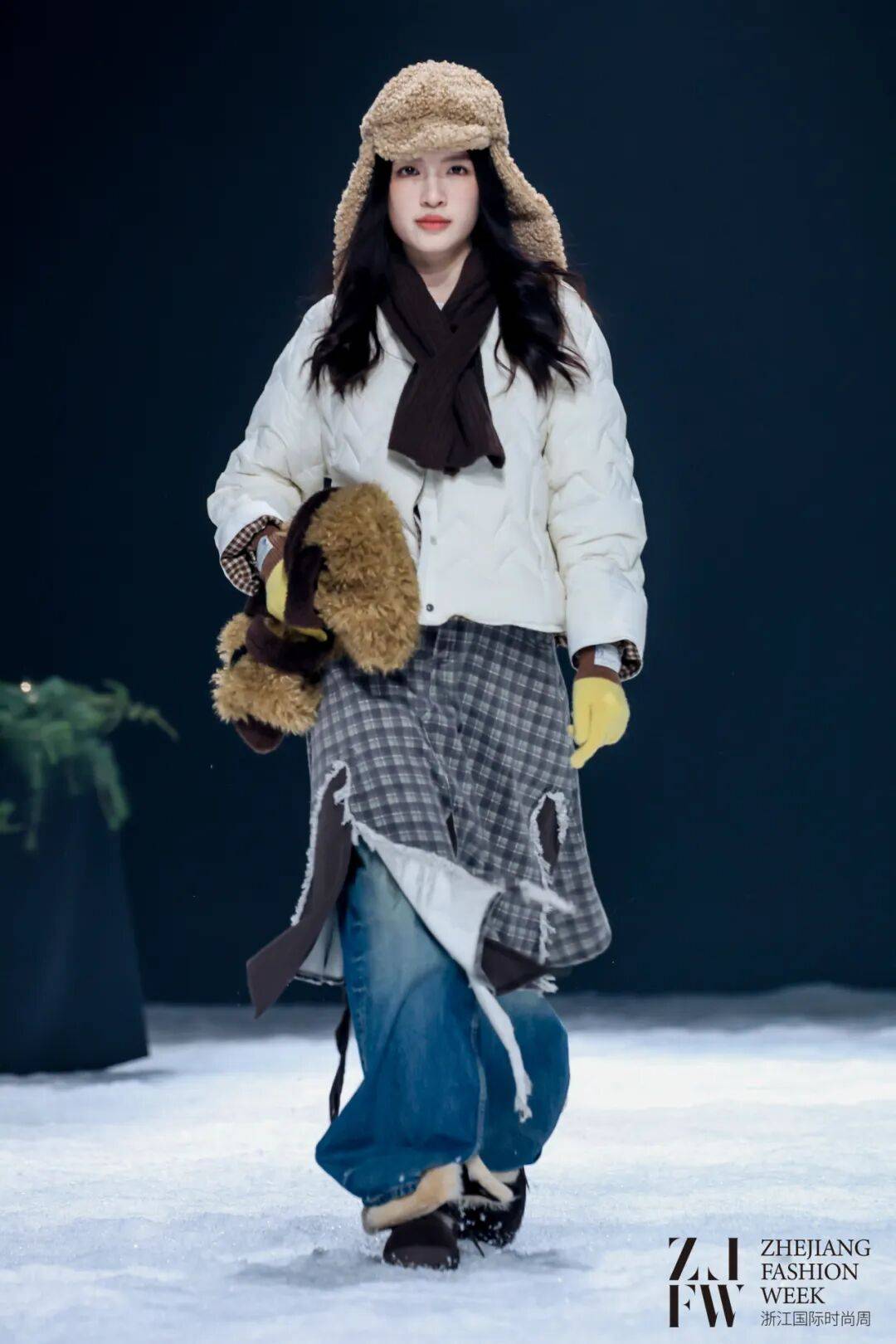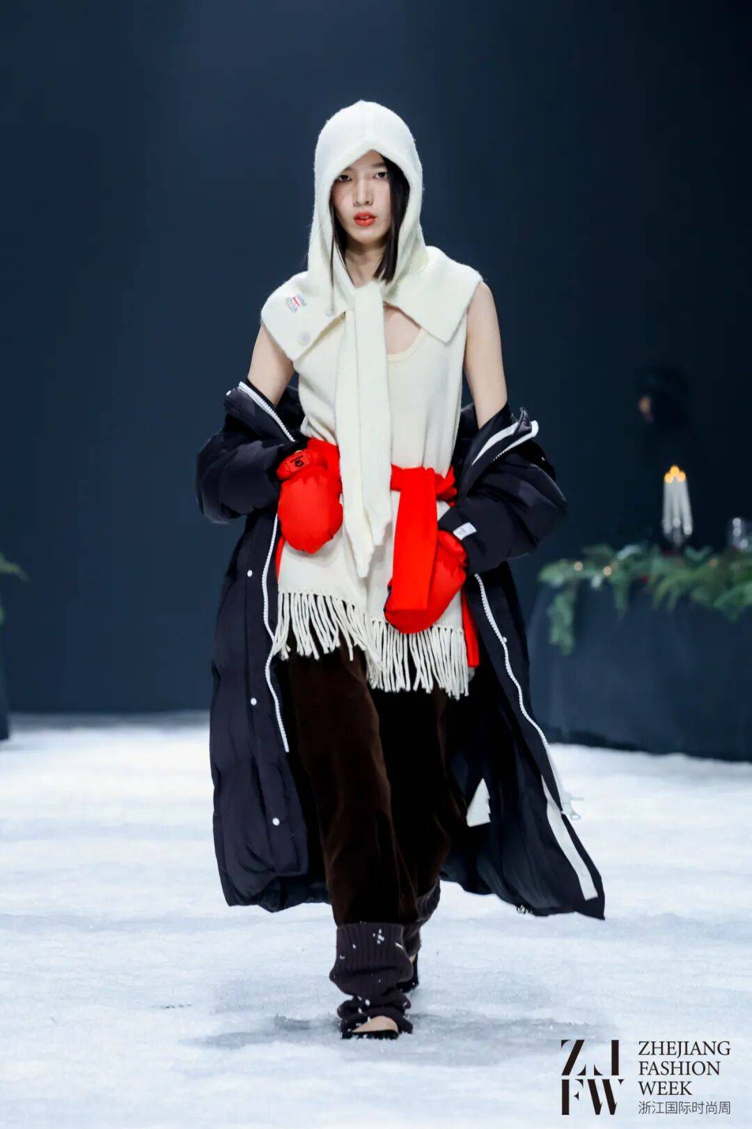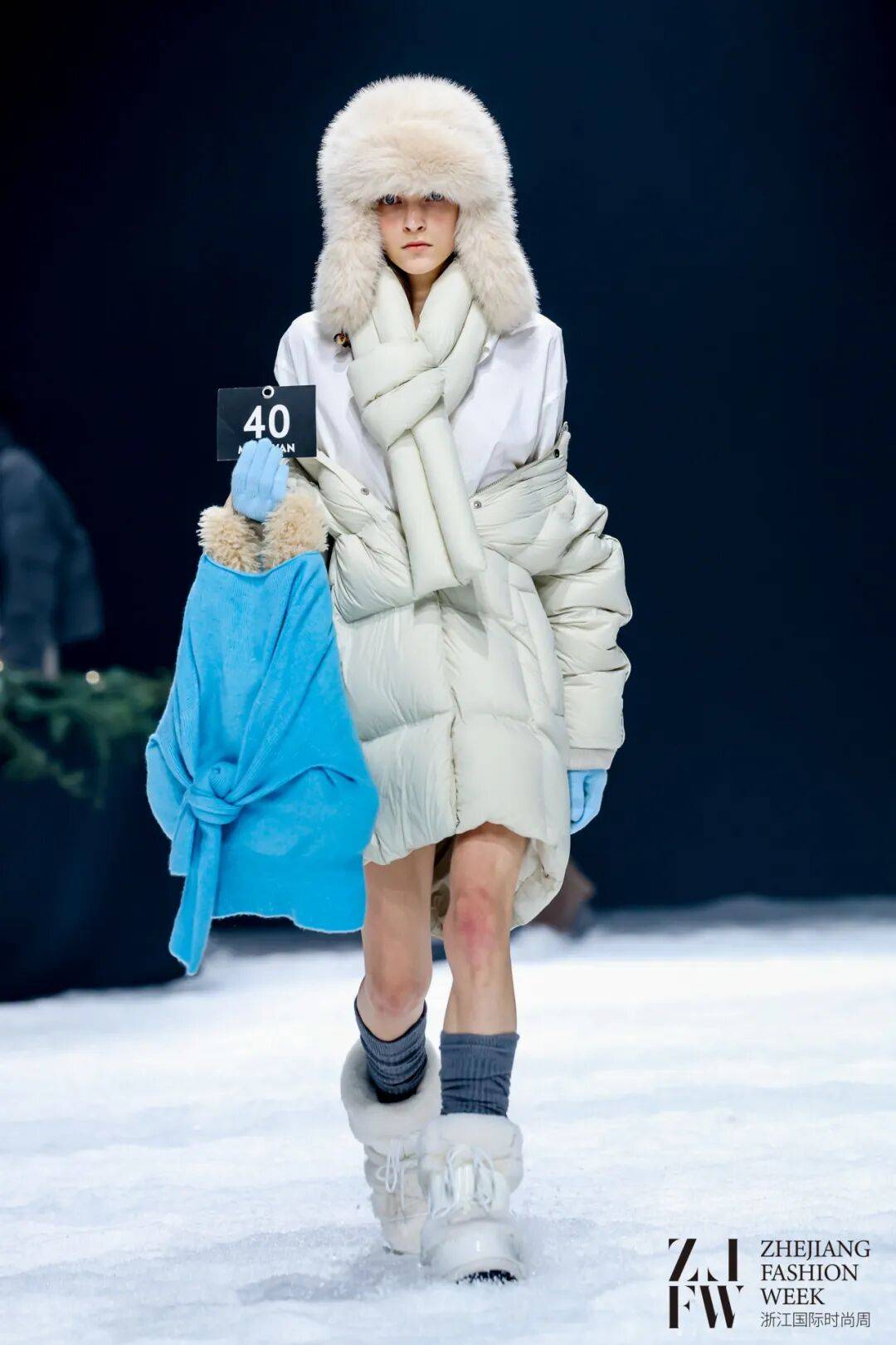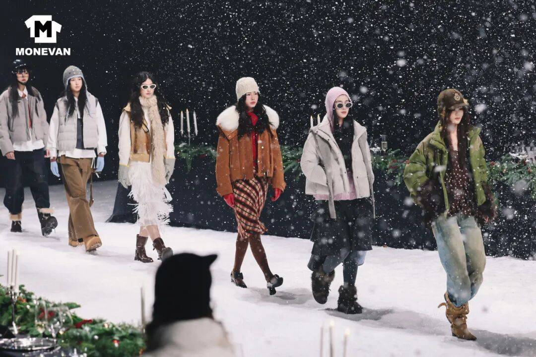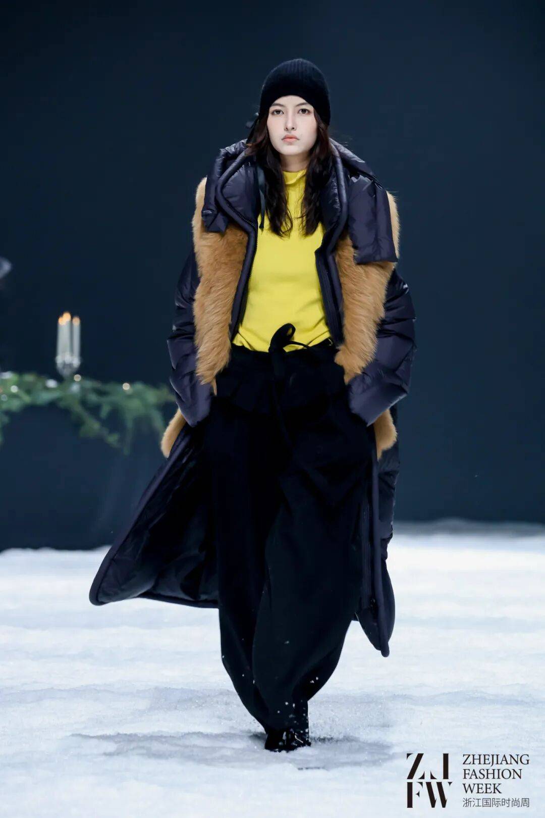 我们本次发布的主题是“冬日雪宴”。之所以设定这个主题,是因为今年的市场环境非常特殊,十月底有一波低温,羽绒服销量很好,但进入十一月初后气温持续偏高,导致行业整体行情不佳。我们想通过这个主题给大家传递信心和希望,即使在“寒冬”环境中,只要坚持做对的事情,依然能实现增长,就像期待杭州的第一场雪一样,带来惊喜和欢乐。设计上,我们希望赋予服装质感,强调原创设计,并极致追求品质,甚至在缝线上都采用了会膨胀的特殊线材,成本虽高出数倍,但力求每个细节都做到最好,让消费者以亲民价格获得堪比高端商品的体验。