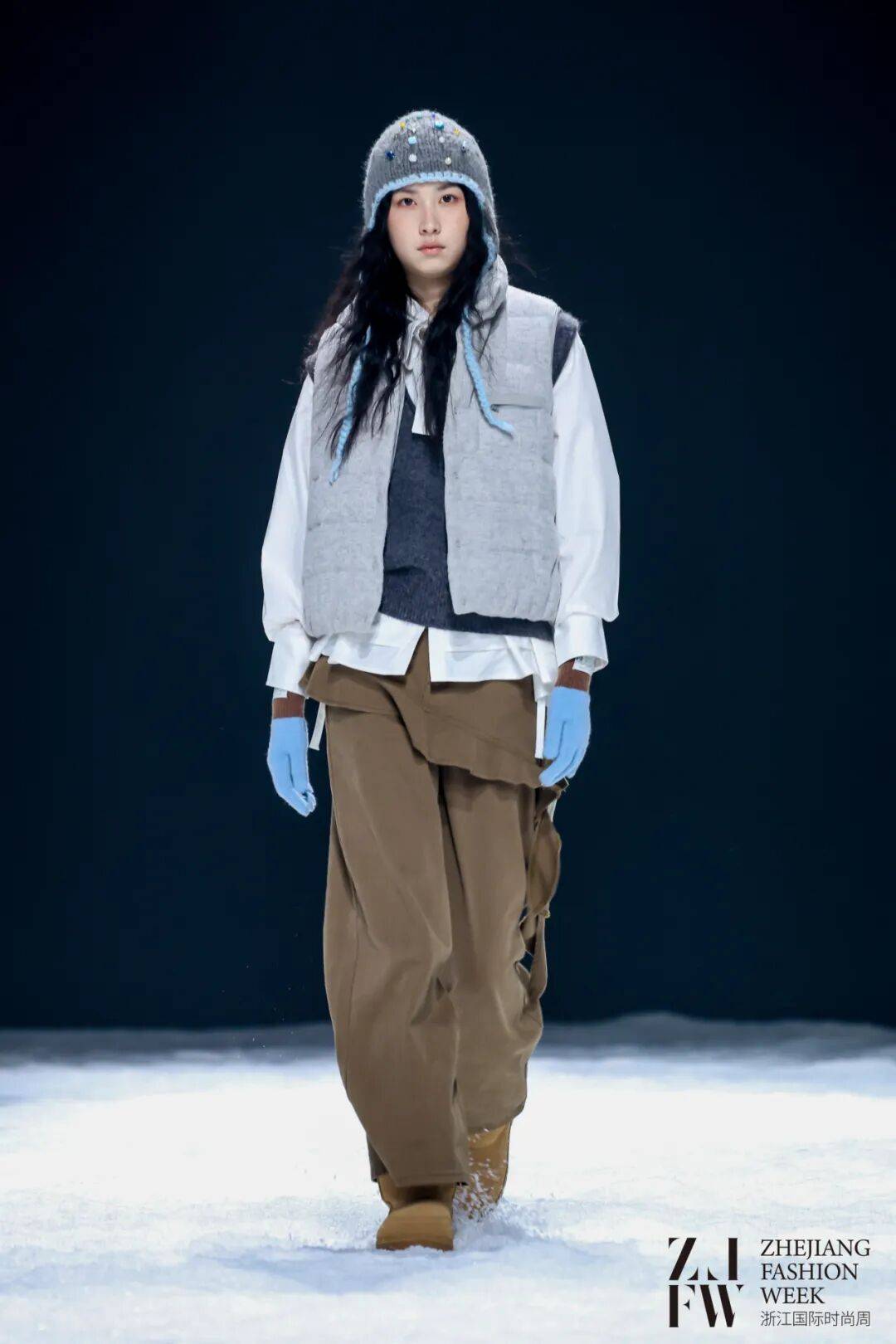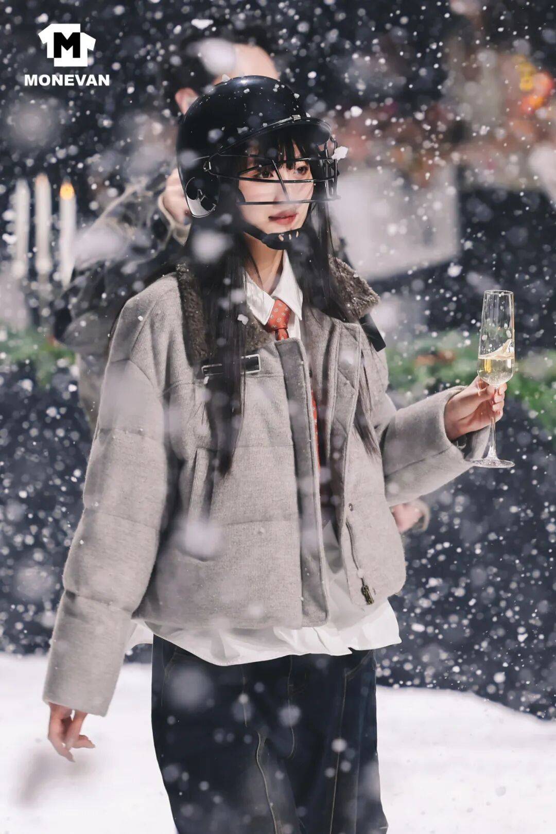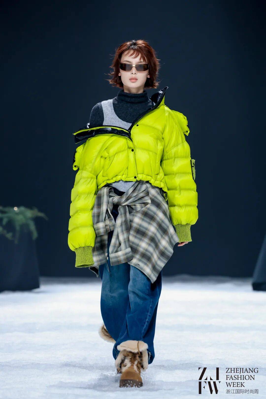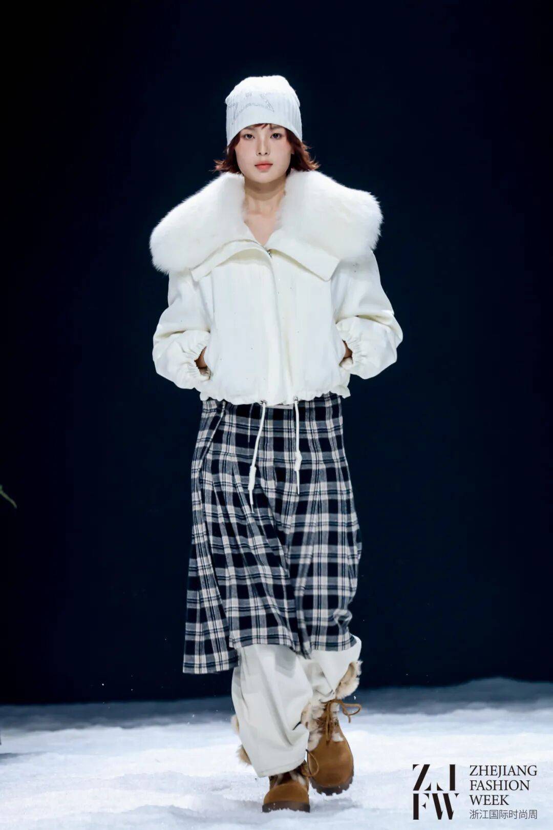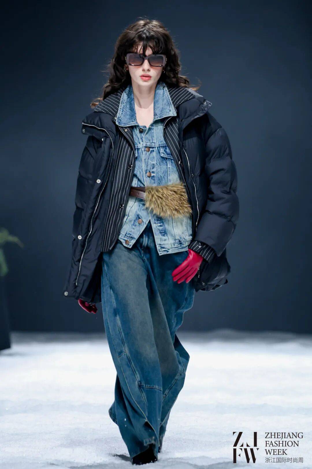 我们本次发布的主题是“冬日雪宴”。之所以设定这个主题,是因为今年的市场环境非常特殊,十月底有一波低温,羽绒服销量很好,但进入十一月初后气温持续偏高,导致行业整体行情不佳。我们想通过这个主题给大家传递信心和希望,即使在“寒冬”环境中,只要坚持做对的事情,依然能实现增长,就像期待杭州的第一场雪一样,带来惊喜和欢乐。设计上,我们希望赋予服装质感,强调原创设计,并极致追求品质,甚至在缝线上都采用了会膨胀的特殊线材,成本虽高出数倍,但力求每个细节都做到最好,让消费者以亲民价格获得堪比高端商品的体验。