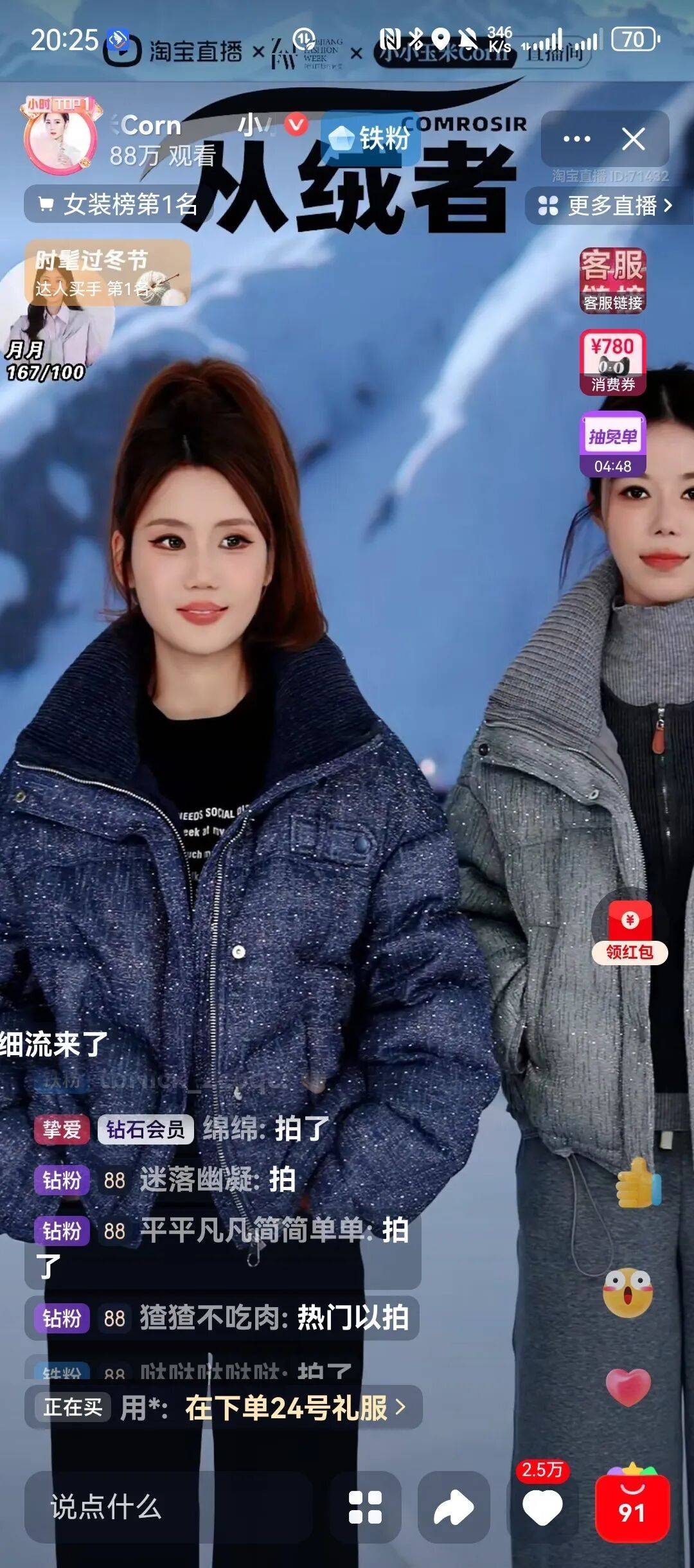 本届时尚周首次与淘宝平台淘宝直播产业带展开官方合作,“从绒者” 作为首批深度参与的淘宝品牌,完成了从时尚发布到商业转化的无缝衔接,成功跑通了“时尚周权威背书—T台声量引爆—『直播间』即时转化”的全新路径。其于秀后次日携手淘宝头部主播“小小玉米Corn”举办的时尚周秀款专场直播,实现了单场销售额突破2000万元的惊人业绩。这不仅印证了品牌本身的强大产品力,更验证了专业时尚内容赋能电商消费的巨大潜力。