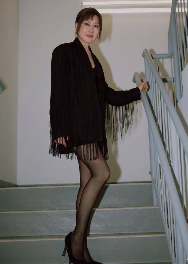 在一众女星中,她的短裙黑丝搭配格外吸睛,与以往的保守风格形成强烈对比。