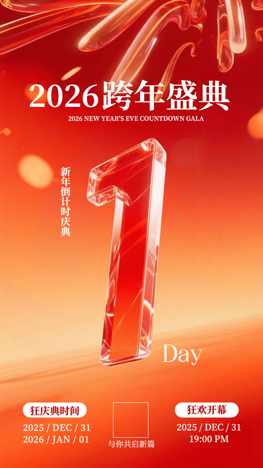 这组跨年海报模板,用渐变光效传递未来感,黑底凸显视觉高级感,文案风格契合品牌盛典的格调,让倒计时既具科技质感,又传递新年的崭新氛围。
