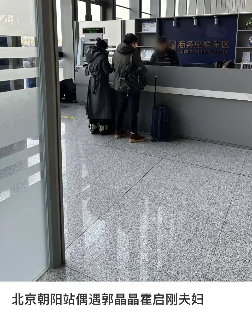 近日,有网友在北京朝阳站偶然看到了『郭晶晶』和霍启刚结束一天的工作准备出行。这对夫妻一如既往地低调,穿着风格统一,看上去十分和谐。霍启刚穿着一身黑色西装外套🧥搭配长裤,背着一个黑色背包,比起平时偶尔偏商务正式或运动休闲的造型,这次显得简洁而有型。『郭晶晶』则戴着一顶黑色针织帽,搭配长款黑色『风衣』,整体造型时髦又保持身材的修长感,没有因穿得较厚而显臃肿。两人同时身穿黑色,从头到脚的情侣装让人感觉颇具默契,整体气质清爽自然,展现出他们之间的亲密和协调。