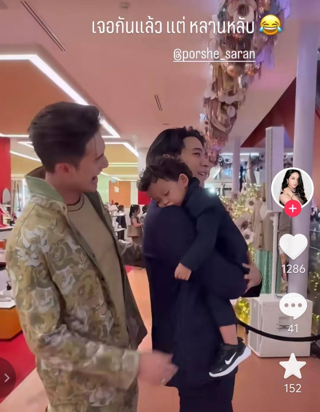 此外,Mik还遇到了好兄弟Porshe。Porshe带着儿子一同前来,小家伙“小车车”趴在爸爸肩头睡得正香。久别重逢的两人亲切寒暄,场面温馨。