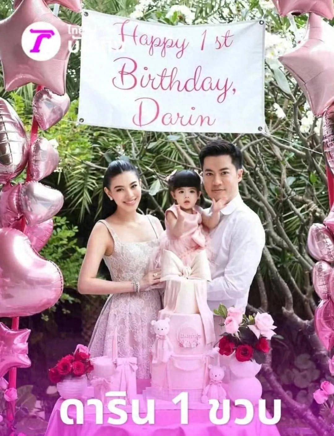 近日,泰国当红混血女星Kat在个人社交账号上分享了一组温馨家庭照,记录了她与富商老公Hiso Kong为一岁爱女Darin隆重庆生的甜蜜瞬间。照片中,一家三口同框出镜,幸福满溢,令人称羡。