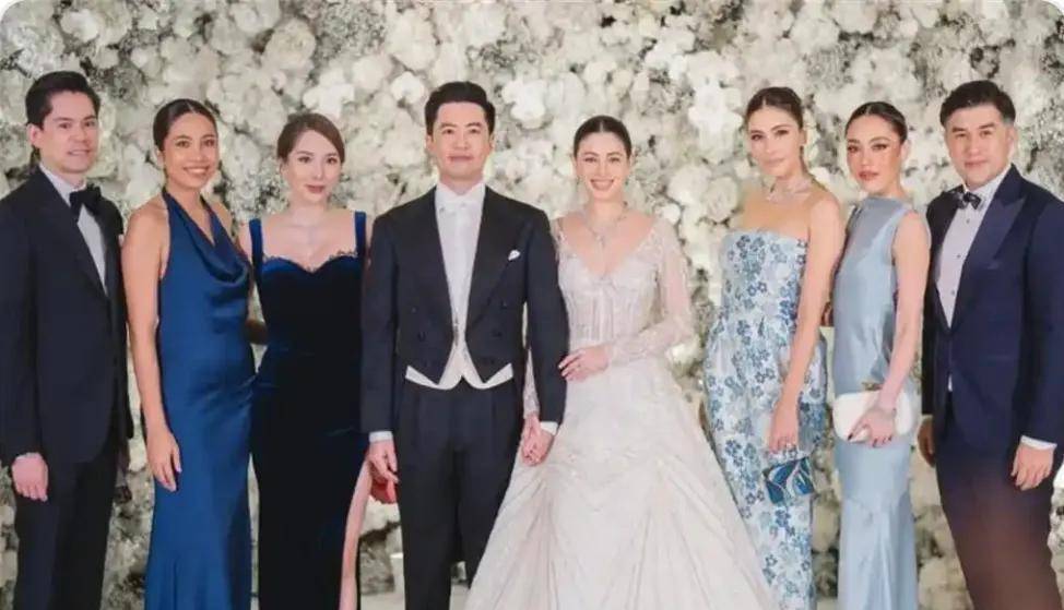 当天,身为主人公之一的Kat身着一条精致的米白色蕾丝吊带长裙👗,高马尾造型显得清爽利落。她指间闪耀的结婚钻戒与腕上的名表尤为吸睛,这款手表与她往日晒出的价值数百万的藏品风格一脉相承,其奢华程度足以让普通人望而兴叹。