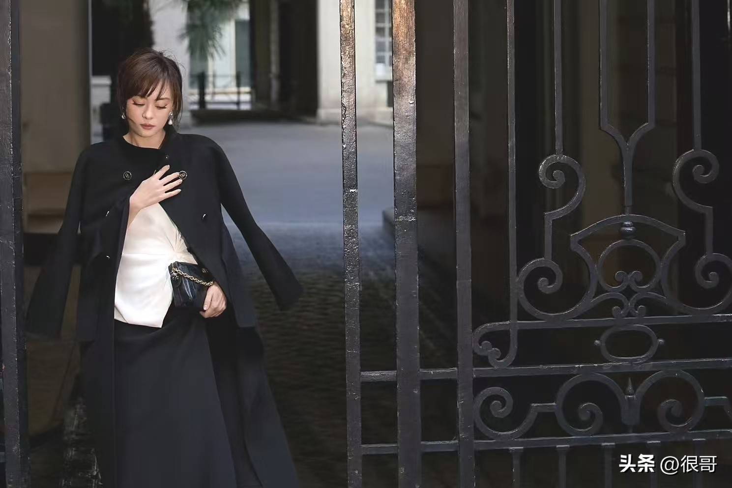 垂坠感十足的黑色长裙👗如同夜色倾泻而下,裙摆处匠心独运的扭结设计,仿佛被微风轻抚的湖面涟漪,随着步伐摇曳生姿。金属『链条包』作为点睛之笔,其律动轨迹与模特猫步形成完美和弦,将法式chic与东方写意美学融会贯通。