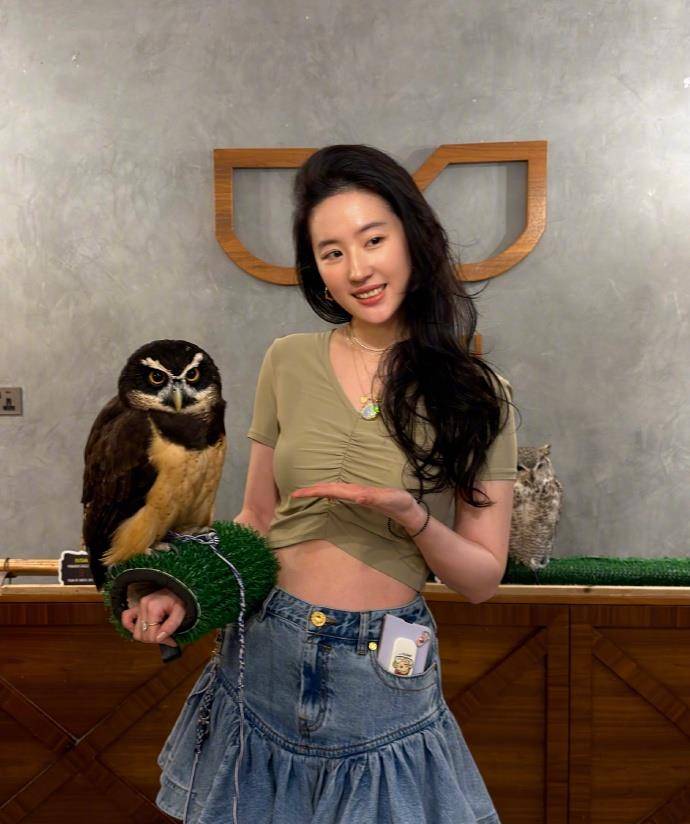 更有趣的是,她还与一只猫头鹰亲密互动——轻轻托住它立在臂上,同时不忘做好表情管理,画面可爱满分。素来喜爱猫狗的她,连猫头鹰也能从容相处,不愧是不折不扣的“动物爱好者”。