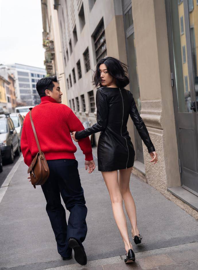 最直观的争议来自身高差。游天翼官方身高178cm,加之T台习惯的高跟鞋👠,身高常直逼185cm。
