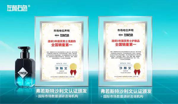 凭借扎实的科研与市场表现,品牌斩获多项权威认可:获弗若斯特沙利文权威双认证 ,“连续三年国货男士护肤全国销量第一”、“连续三年国货男士『洗面奶』全国销量第一”;斩获“中国好配方年度大奖”。