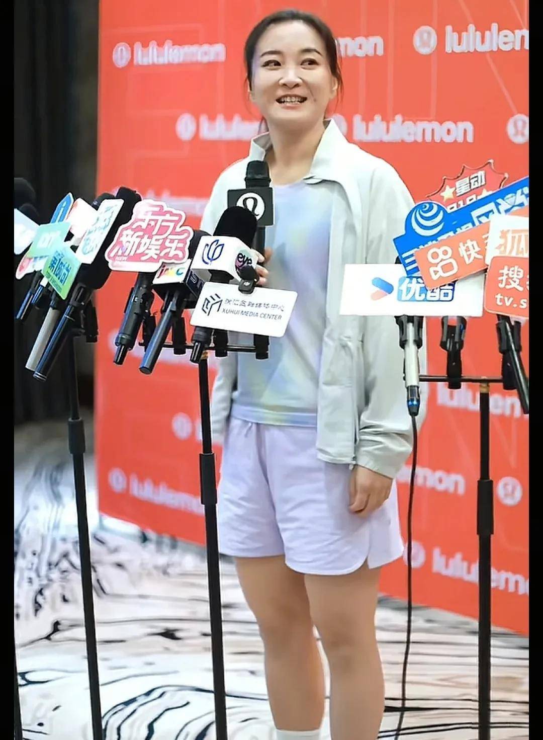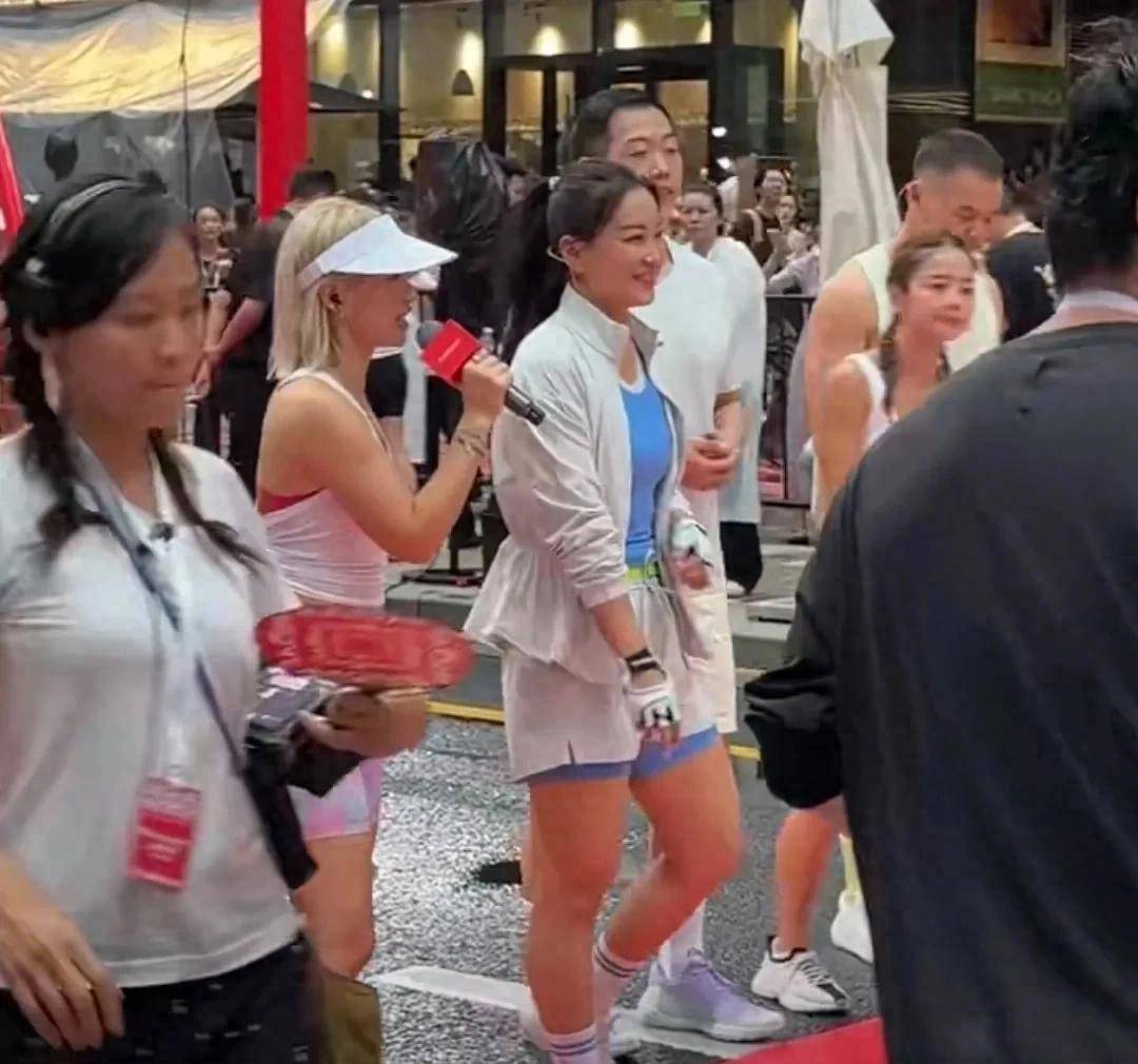 她身着一套轻便的『运动装』,外搭防晒衣,高高的马尾随着步履轻快摇曳,整个人步履生风,散发出活力十足的健康气息。面对现场的粉丝与路人,她始终面带亲切微笑,亲和力丝毫未减。