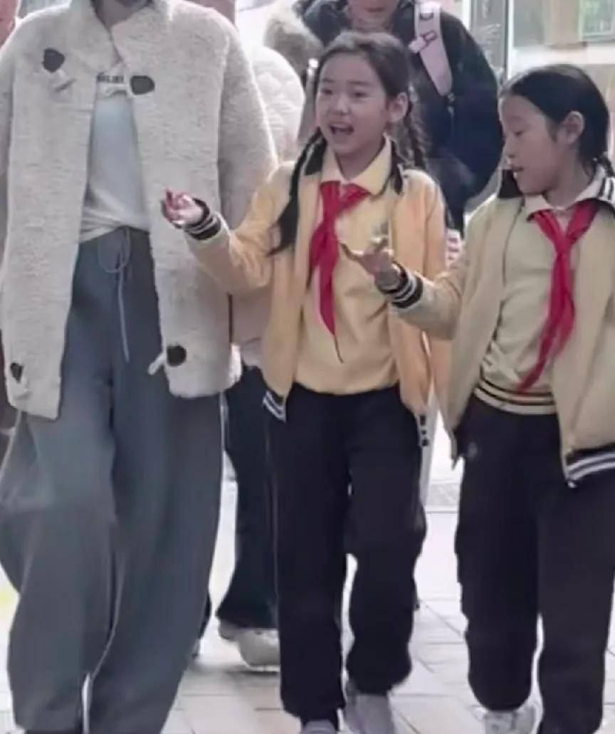 就在不久前,还有网友偶遇『董璇』在校门口接女儿放学。照片中,『董璇』帽子口罩遮面,『打扮』得相当低调;而一旁的小酒窝则小嘴说个不停,想必正在和妈妈分享一天校园生活的点滴趣事,母女间的温馨互动十分有爱。