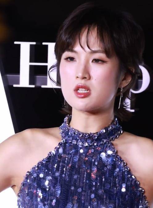 但对比她初出道时被嘲“像服务员”的造型,已然进步显著。