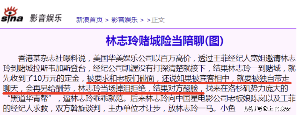 2005年,『林志玲』受邀前往美国参加商业演出,结束后被主办方要求留下来参加老板们的酒局,『林志玲』不愿意,引来当地华裔黑帮的逼迫,被禁足在酒店。