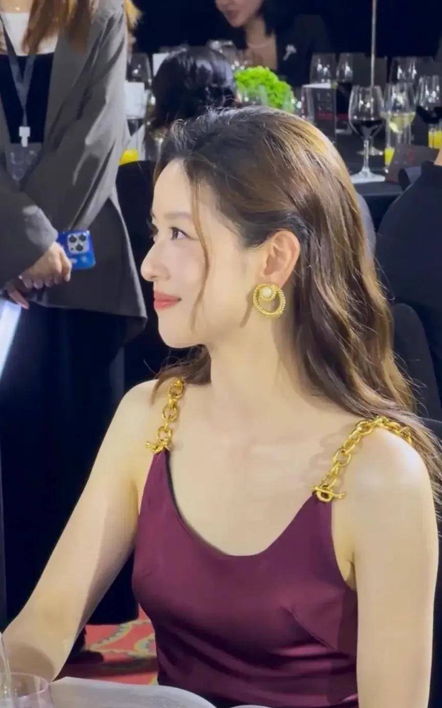 章泽天以一袭Bottega Veneta酒红色吊带长裙👗惊艳全场,那丝滑垂坠的裙摆,仿佛被月光浸染过的红酒,沿着她身姿的曲线悄然流淌。精致的锁骨如同蝶翼,在闪耀的黄金饰品映衬下,她通体散发着珍珠般温润的光泽。昔日的“奶茶妹妹”已然褪去青涩,宛如一颗经过时光打磨的宝石,透出的是成熟温婉、女人味十足的璀璨光华。这一次,她大胆告别了固有的甜美风格,展现了她深谙场合着装之道的智慧,如同一位高明的画家,在不同的画布上挥洒出迥异却同样动人的色彩。