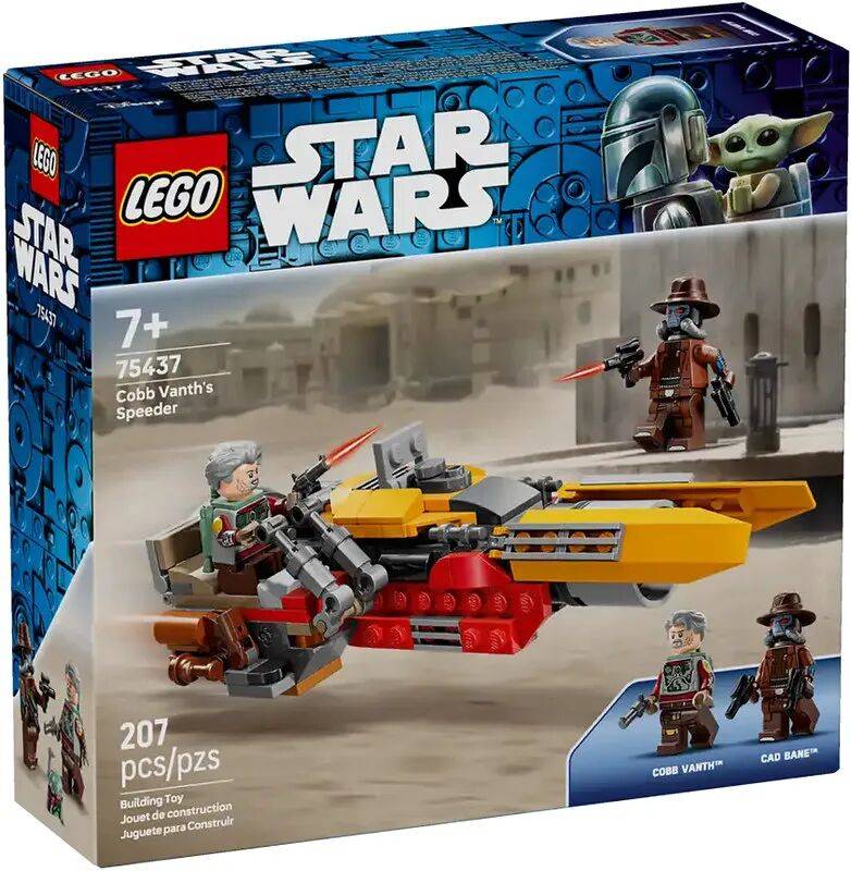 前一阵做 2026 年 1 月乐高星战新品介绍时,粉丝们投票选出了自己最想入手的套装,75441 狩猎者级攻击巡洋舰没有意外成为 No.1,然而第二名,却意外地花落这套 75437 科布·万思的飞行摩托。