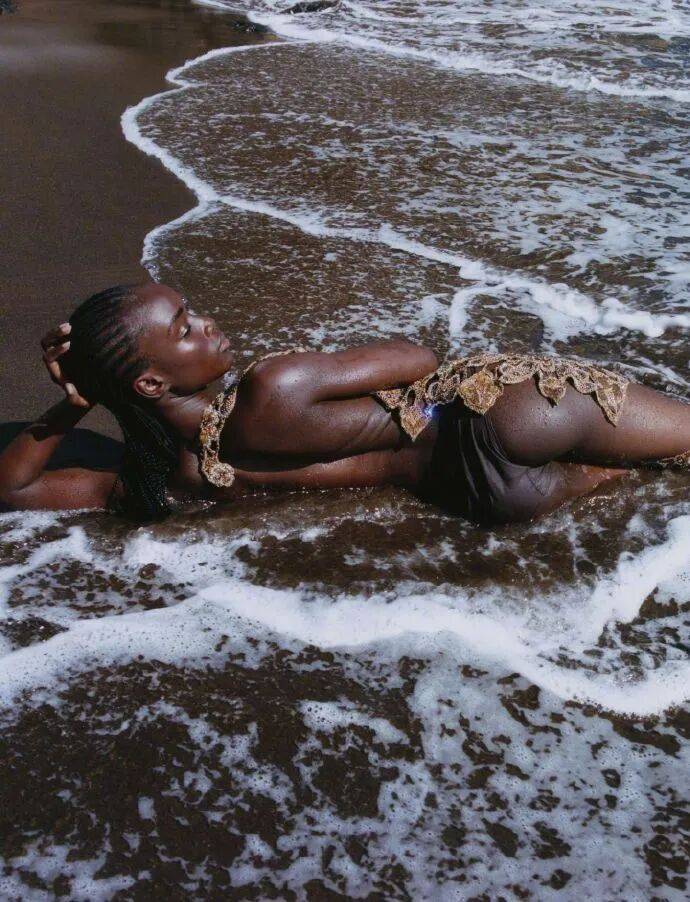『Vogue』 德版选 Maty Fall+Gucci + 海边做开年封,从不是 “凑元素博眼球”:她的骨相自带 “肩峰锐、轮廓野” 的张力,刚好接住 “Gucci 的奢雅 + 海的荒野”—— 不是奢牌定义场域,是 “她的骨相野让奢装落了海的地,让海场有了奢的魂”;这也是开年封的新逻辑:不是 “用奢装衬封面”,是 “让人的骨相张力,裹住奢与场的魂”。
