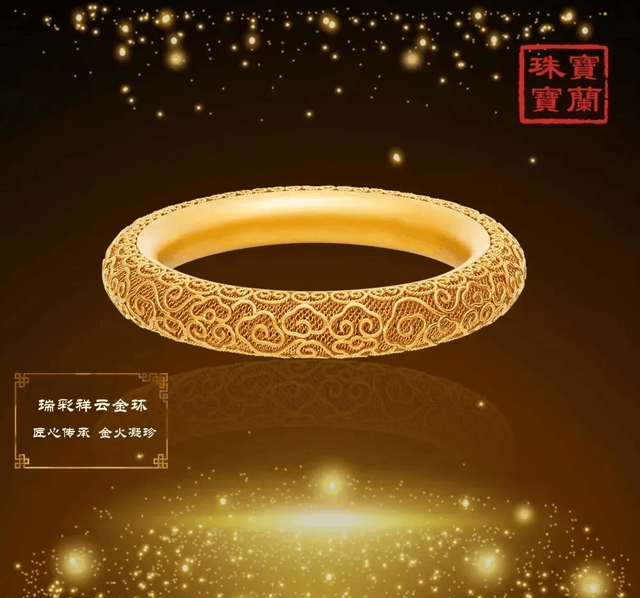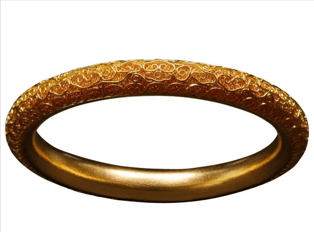 (三)瑞彩祥云金环 花丝编织祥云图案环绕手镯,寓意吉祥如意,造型大气,尽显东方韵味。 回收时,手镯重量是关键,祥云花丝工艺加分,金环无明显变形、磨损且纯度达标,能获可观价。