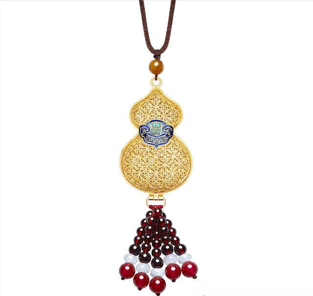 (二)祈福葫芦吊坠 葫芦造型,花丝装饰并点缀珐琅,寓意福禄双全。 回收时,价格主要看黄金重量和纯度,珐琅无损坏、掉色,能提升整体回收价值。