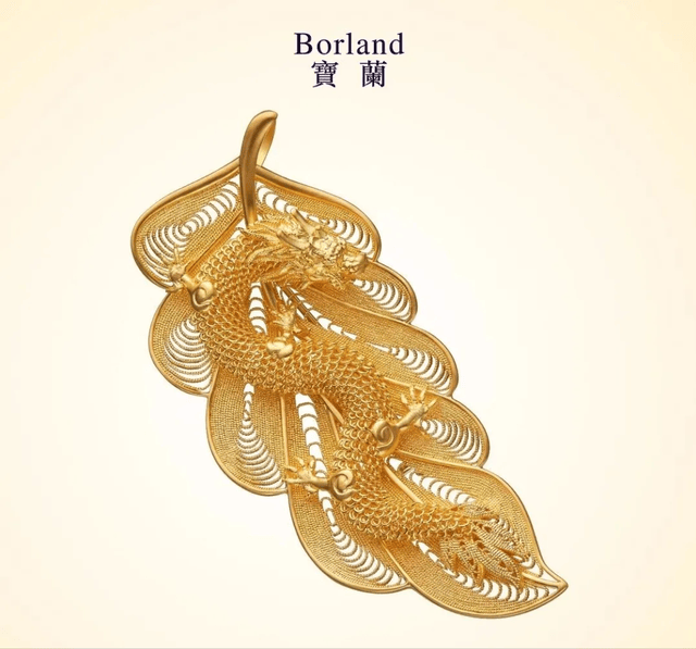 (三)龙形胸针 独特造型展现龙的霸气,花丝工艺完美呈现龙的身形、鳞片等细节,极具个性。 回收时,独特题材与工艺有优势,黄金品质有保障、胸针无明显损坏,能获回收市场认可。