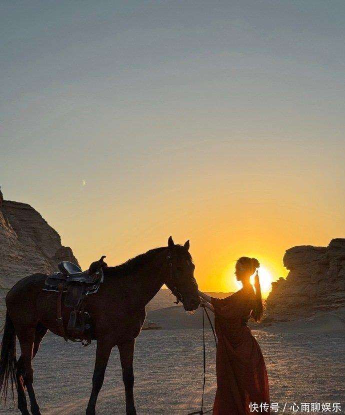 这份惊艳,源于她与场景的完美融合,也来源于『陈都灵』自身气质的蜕变。过去,我们常看到她在校园剧中扮演清冷温婉的学霸角色,而这次的大漠红衣造型,则让观众看到了她身上所隐藏的侠气与张力。红衣如火,象征着燃烧的少年意气;大漠如卷,承载着江湖豪情。两者融合,让她突破了以往的固有形象,展现出了多面可塑性。牵马的姿势从容不迫,眉宇之间透露着英气和威严,仿佛下一秒就能策马扬鞭,奔赴一场快意恩仇的江湖之旅。这种既能温柔如水,又能刚烈如火的气质,正是古风造型最迷人的魅力所在。