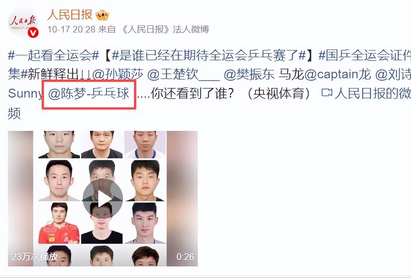 很期待这次的全运会,其实早在17号就艾特了国乒全运会参赛的名单,里面就有陈梦。