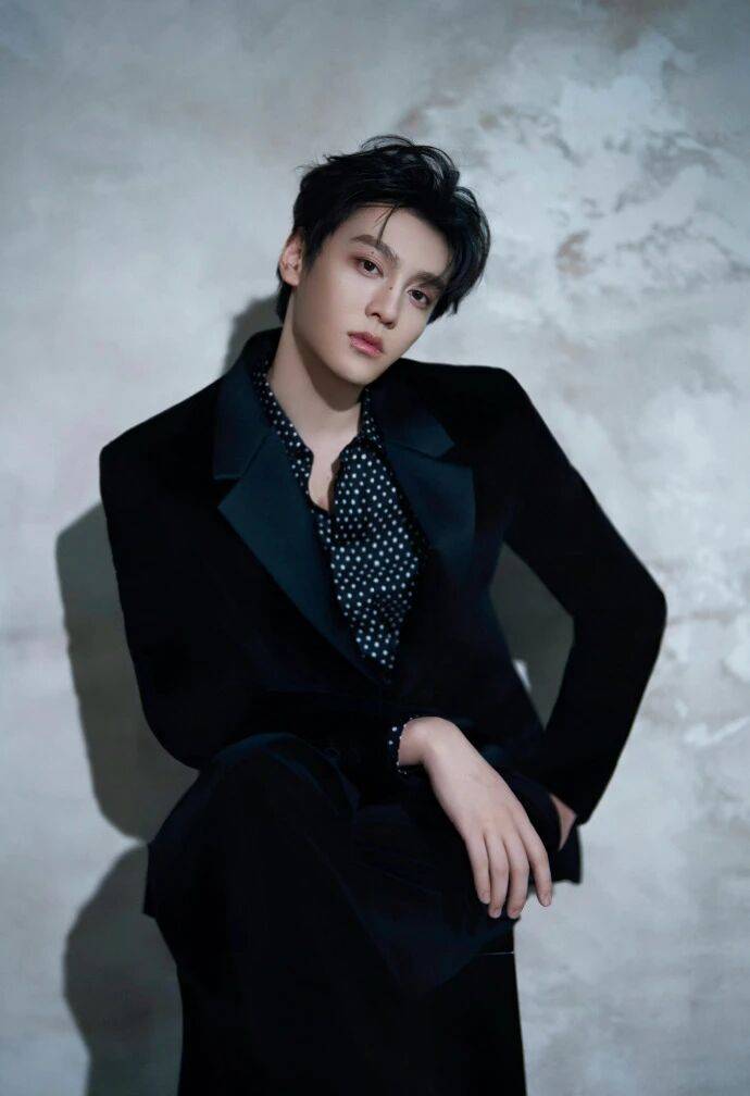 - :黑丝绒西装的肩线是 “柔挺兼容”—— 刚好卡在少年肩峰的锐棱外沿,没沉成 “成熟的奢壳”;丝绒的柔质感裹着骨的俊,把 “Fendi 的黑奢” 焊在了 “少年骨的逸” 里,像 “为他的锐骨量身裁的奢雅装”。