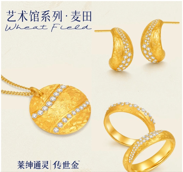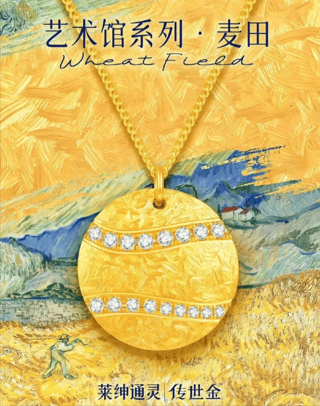灵感来自梵高《麦田》,1:1 麦穗雕刻,精心雕琢,用四大工艺,以金为布,执錾为笔,将名画风韵锻入黄金肌理,寓意 “顺遂丰收”。