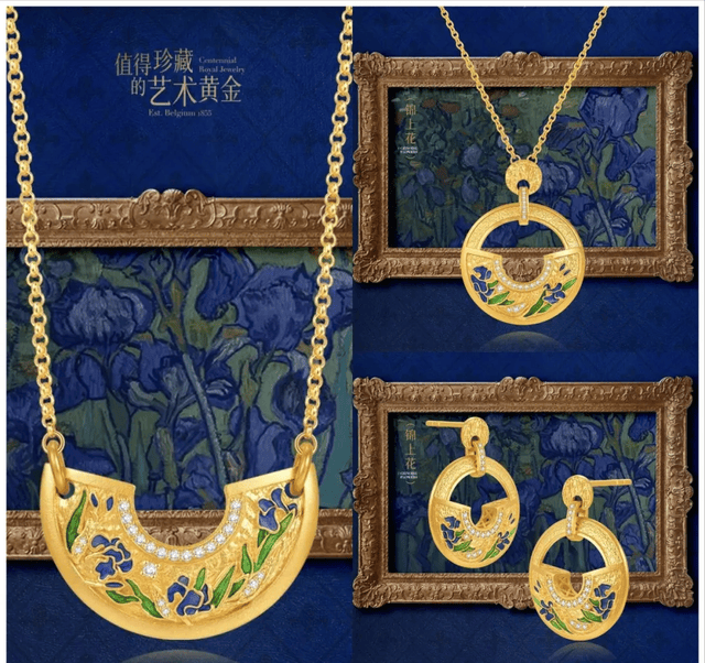 灵感来自梵高《鸢尾花》,用皇家 “画珐琅” 镶嵌与 “油画” 肌理雕刻,还原鸢尾花形态,尽显艺术感。