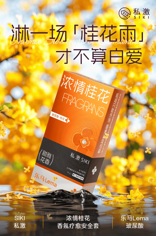 SIKI私激【乐马】系列灵感来源于情趣香薰,将『香氛』与安全套巧妙融合,用芳香点缀爱的旅程,感受香味带来的自在流动,以樱花、玫瑰、桂花三款香味唤起内心不一样的情愫。