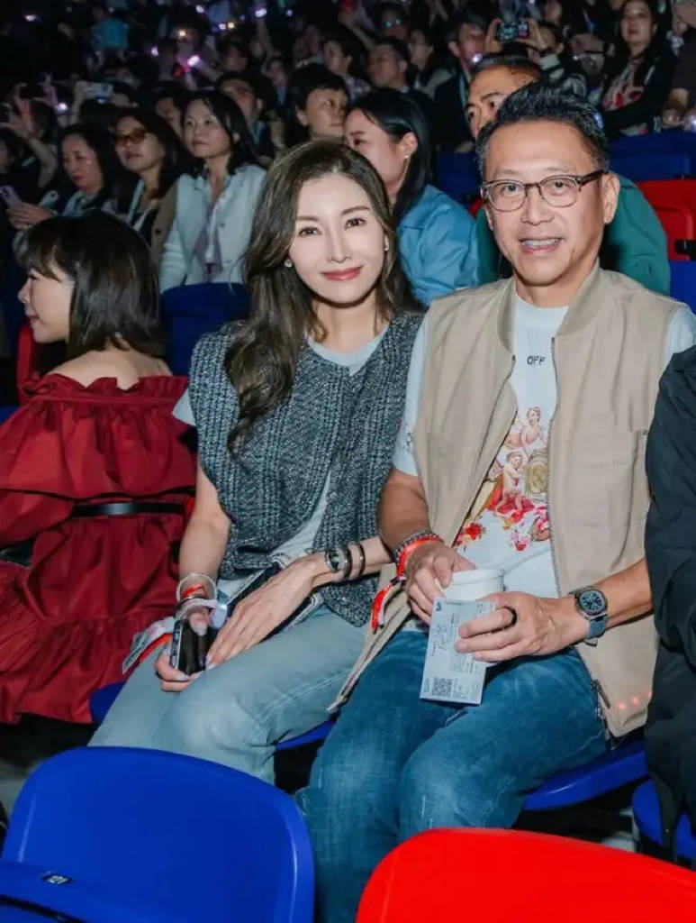 身旁的许晋亨,虽然只大她七岁,但对比之下,岁月的痕迹似乎更明显一些。两人同框,有时竟让人有种隔代人的错觉。这大概就是人们常说的“岁月不败美人”吧,更何况这位美人生活舒心,没什么烦忧。