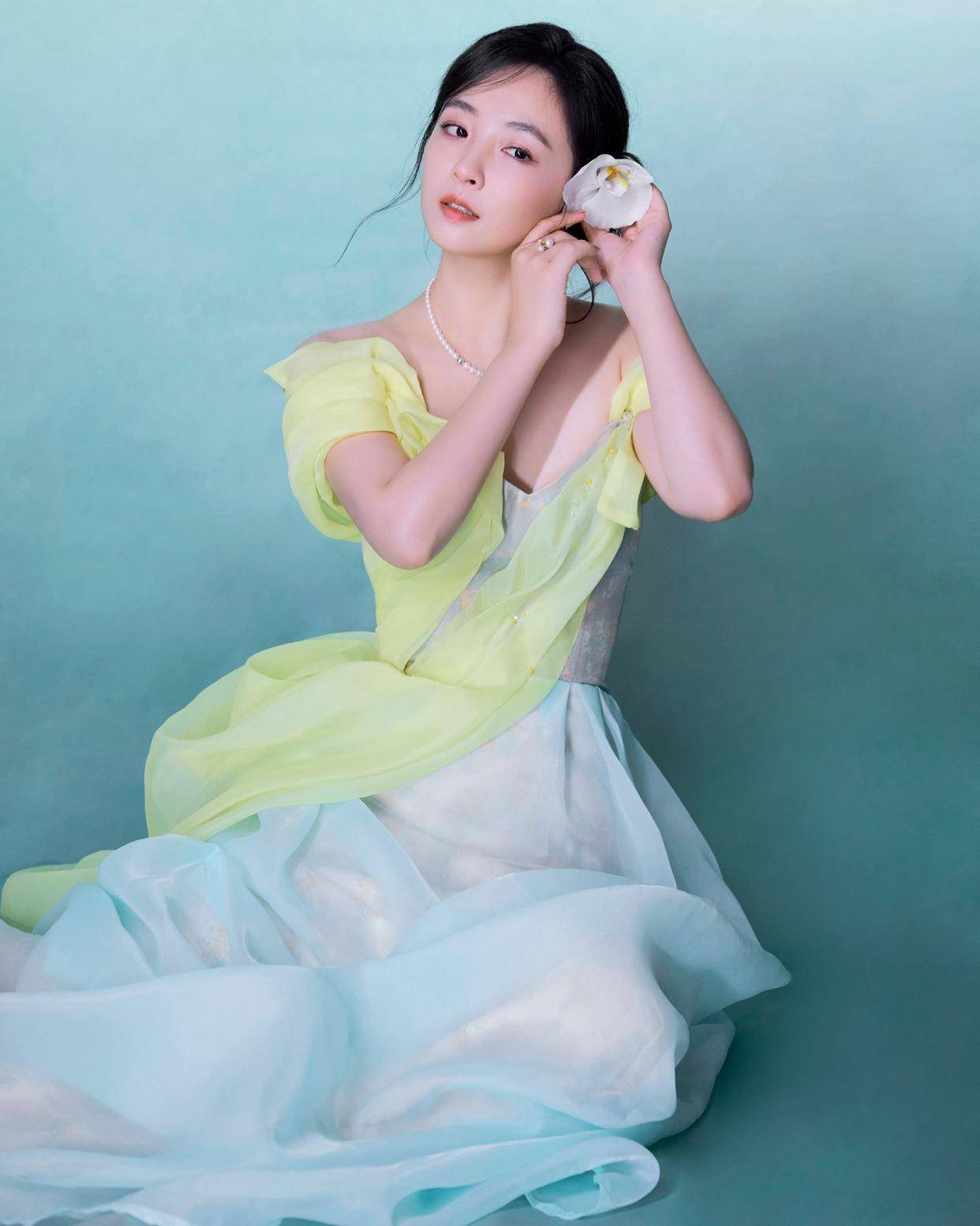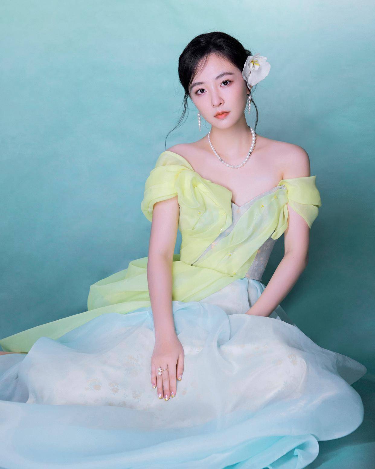 作为时尚博主,我必须说『吴倩』这套look的细节处理堪称教科书级别。她选择将头发盘起,露出光洁的额头和修长的脖颈,这样不仅显得精神利落,还能让珍珠项链成为视觉焦点。她佩戴的耳饰也是小巧精致的款式,既不会抢镜,又能为整体造型增添几分贵气。最妙的是她发间的那朵白色小花,看似随意,实则精心设计,为这套造型增添了几分灵动感。