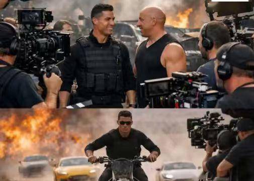 范·迪塞尔在『社交媒体』上甩出一张合影,不是和哪个好莱坞硬汉,而是搭着克里斯蒂亚诺·罗纳尔多的肩膀。 配文直接官宣:欢迎加入“速激”家族。 照片里,C罗手持导演板,背景是熟悉的剧组场景,笑容和他踢进点球时一样自信。