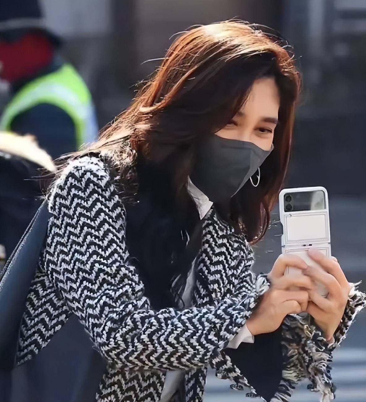 镜头里的她『妆容』精致、西装革履,依旧保持着女强人的干练气场。