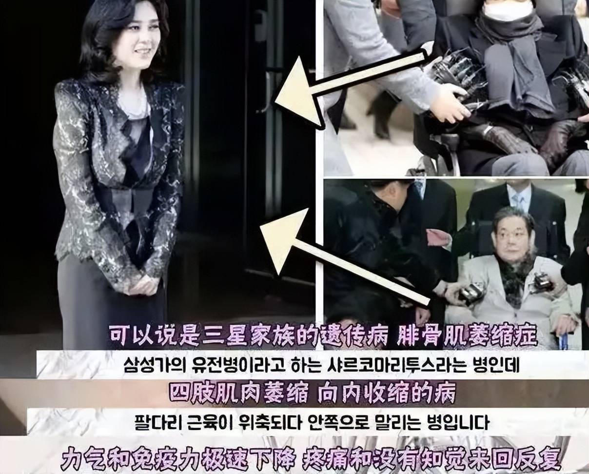 三星家族存在遗传性腓骨肌萎缩症,李富真的父亲『李健』熙就在晚年公开亮相时一直坐着轮椅或拄着拐杖🩼。