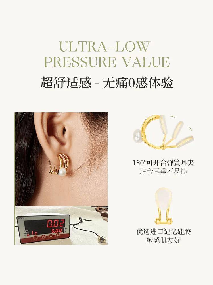 耳夹版:硅胶弹簧无痛设计仿佛为耳朵定制,没有耳洞也能享受珍珠的优雅;