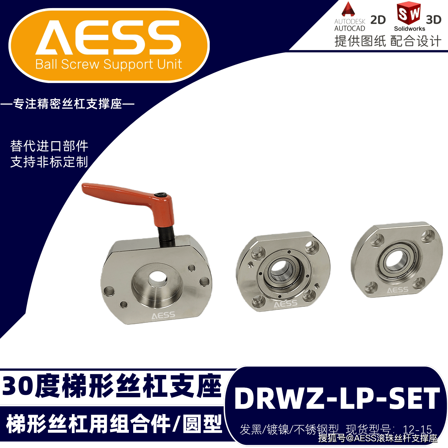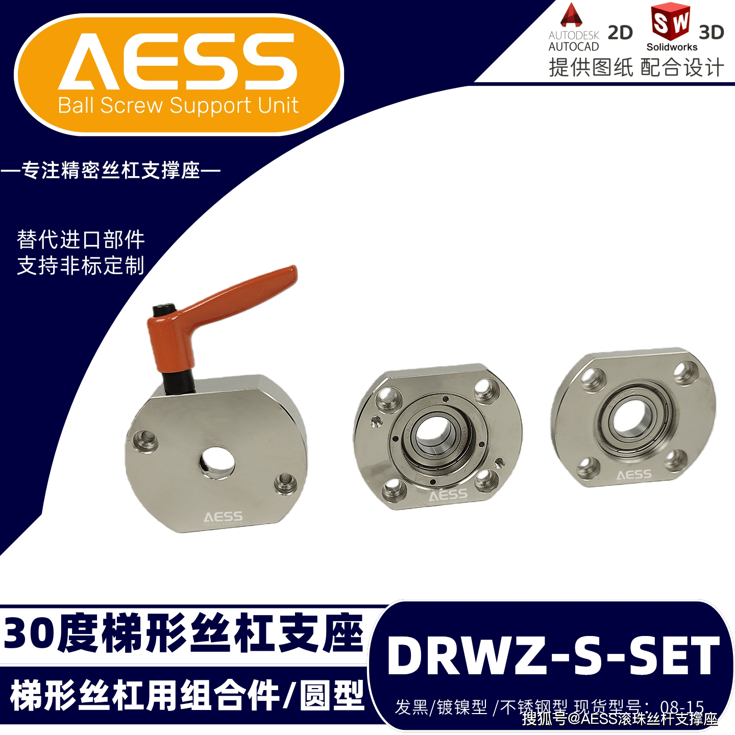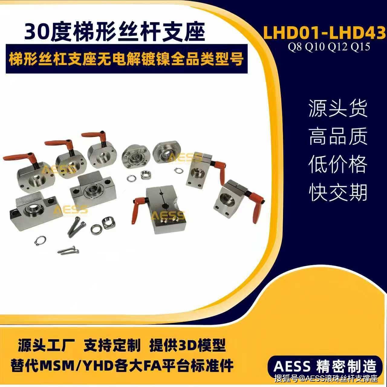 AESS 有 18 年专业研发、生产经验,是全系支撑座生产厂家,可最大限度节省降低采购时间、商品成本。其丝杠支撑座和梯形丝杠支座可完美替代米思米和怡合达等精度标准件型号,专注工厂自动化标准零件替换、非标定制一站式服务,能够根据客户的特殊需求,提供定制化的丝杆支撑座产品,满足不同客户的个性化需求。可以支持表面处理有发黑,镀镍、镀黑铬,材质有不锈钢材质,铝合金材质等,我们工厂能支持不同材质的定制,不同表面处理的定制。全品类型号标准件库存现货,现货急发,交货期快,支持提供2D/3D图纸技术支持!