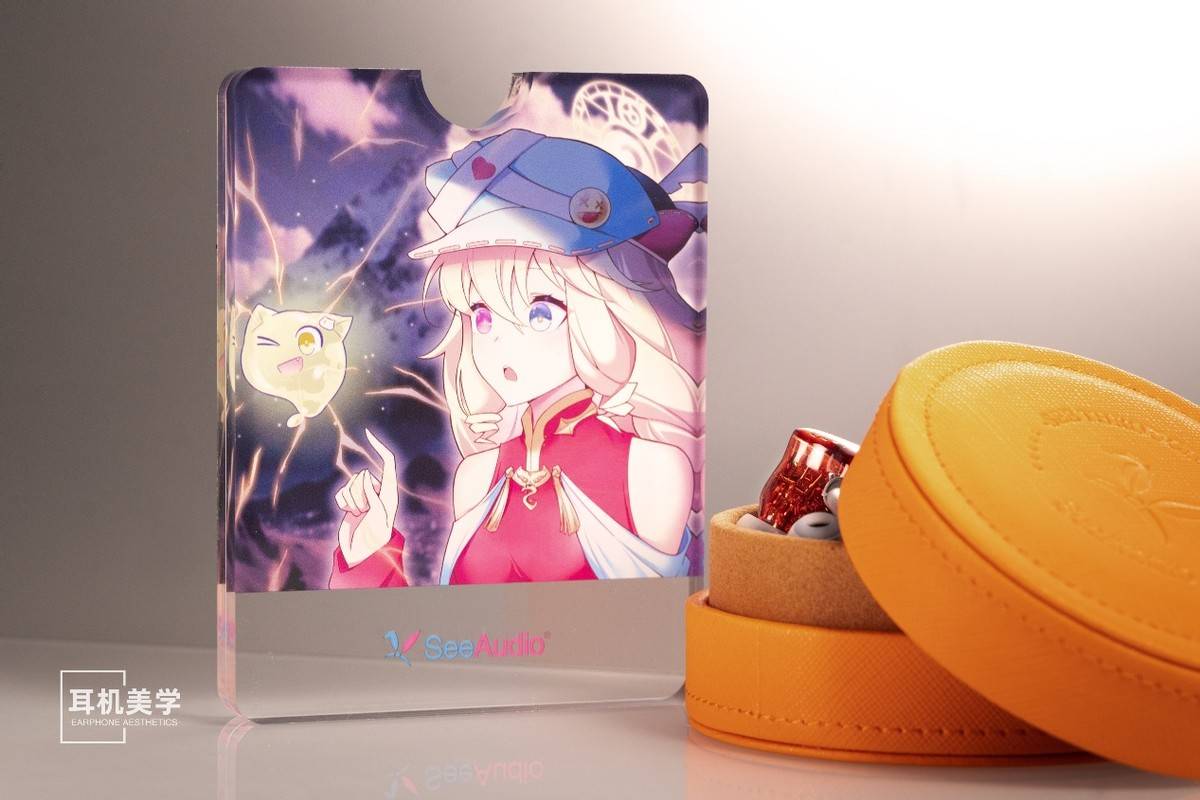 SeeAudio画师的美术功底,在耳机品牌中绝对算得上是第一梯队,而且风格辨识度很高。SeeU包装上的立绘线条清晰、颜色处理和谐干净,同时人物透视关系处理得也很到位,能看得出来画师创作功底优秀,基本功扎实。但和其他品牌用立绘做亚克力钥匙扣或者贴纸的做法不同,SeeU直接在包装内附了一个厚实的亚克力砖。这种呈现方式显然比小配件更有存在感,你甚至可以另配一个发光底座,把它当成装饰品摆在柜子里,非常美观。