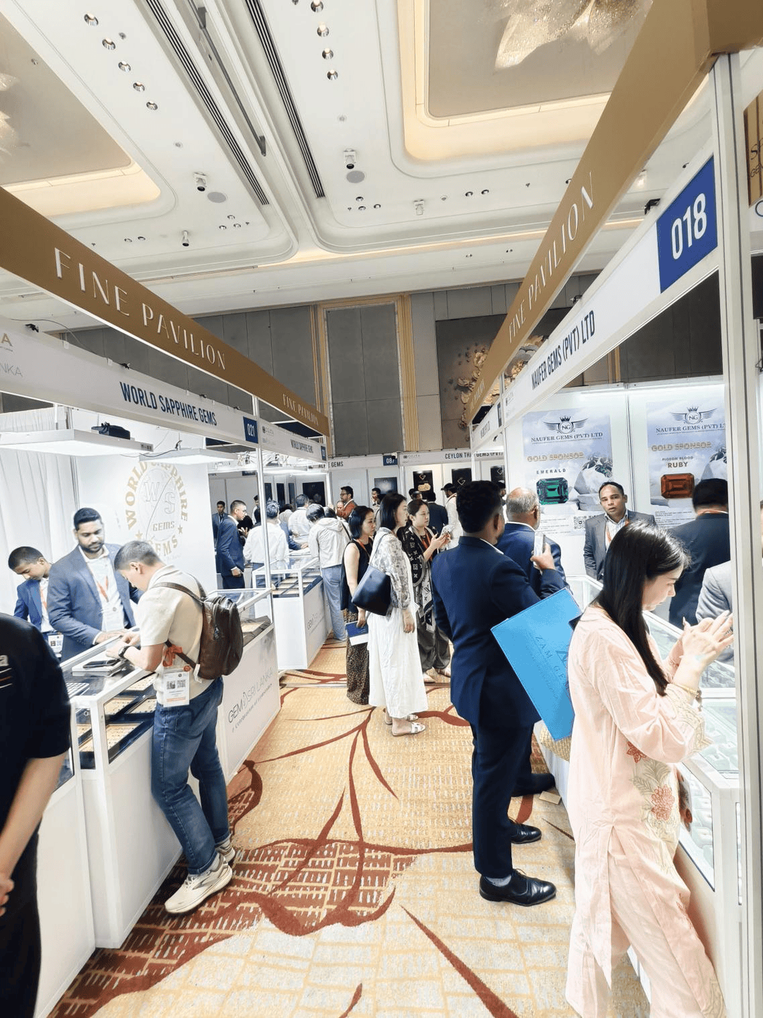 本届展会共展出150个展位,吸引大量的本地和国际买家。斯里兰卡工业与企业发展部长Sunil Handunnetti先生、CGJTA副主席Rizwan Naeem先生、实地宝石学家吉尔德宝石教育总裁Andrew Lucas、吉尔德宝石实验室总裁刘丽红女士以及其他知名嘉宾出席本次活动。