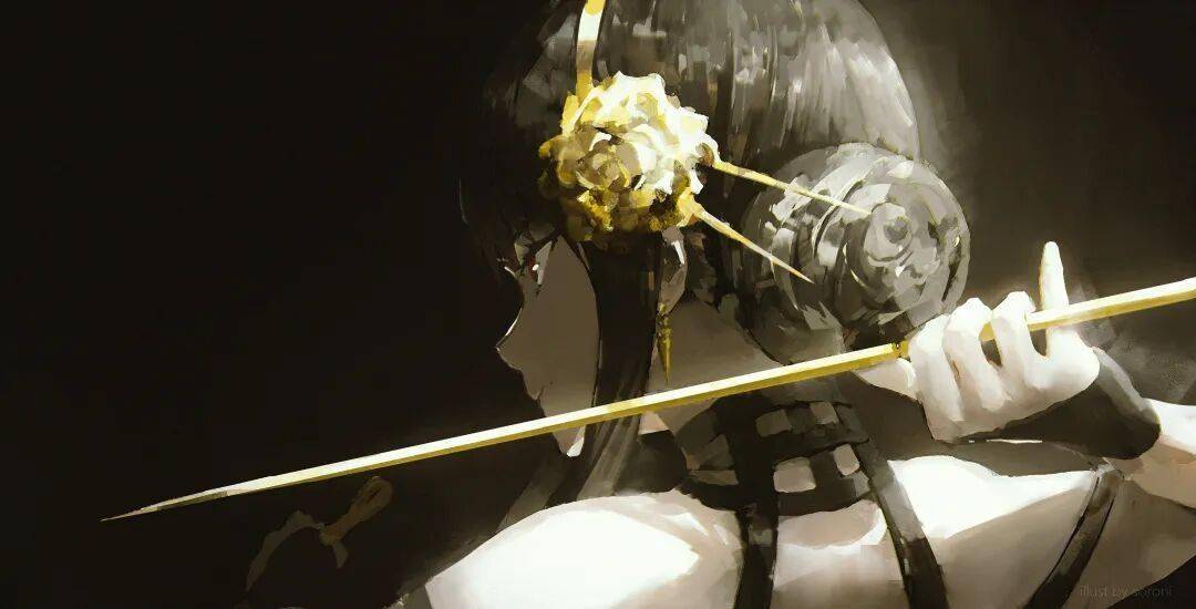 服饰的褶皱用大块的明暗对比概括,但金属装饰等细节会用锐利的小笔刷提亮,形成“粗中有细”的平衡。