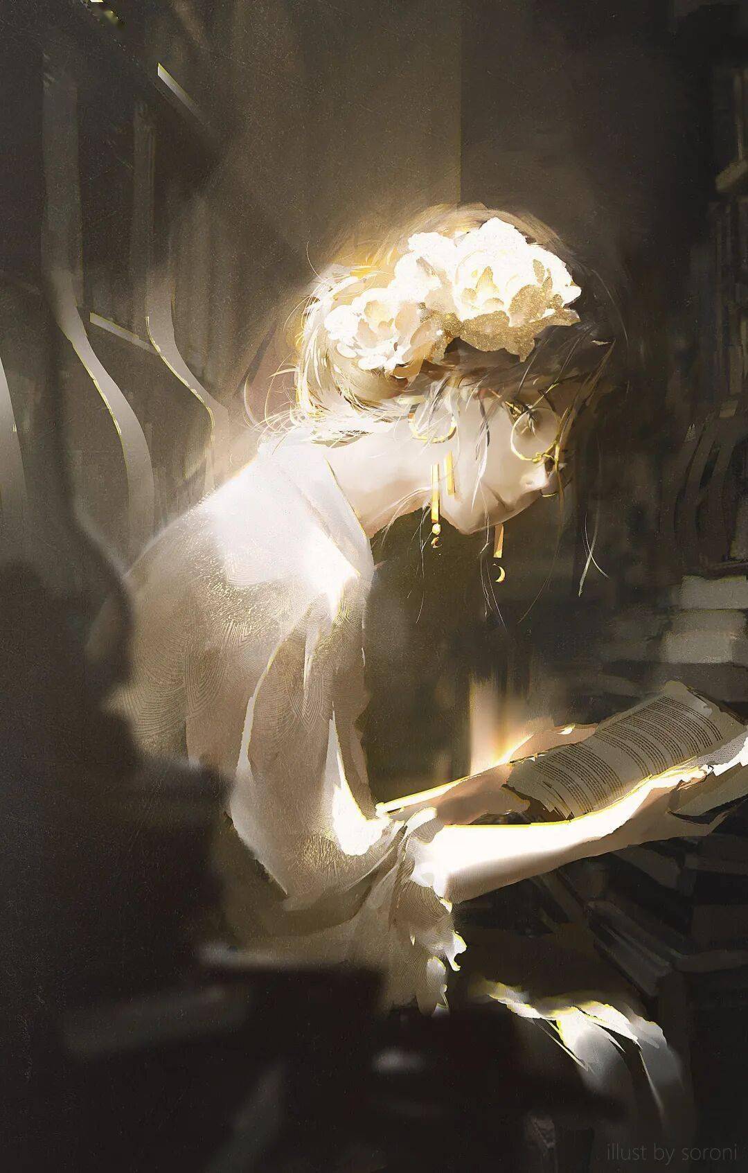 暖色的光雾裹住了她低垂的侧影,背景在柔焦中虚化,仿佛整个世界都后退了一步,温柔又孤独。