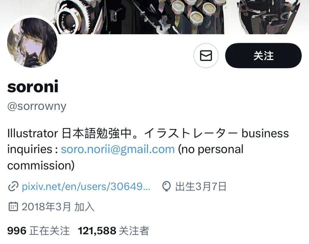 今天,本花也要跟大家聊一位同人画师,Soroni (@sorrowny)。