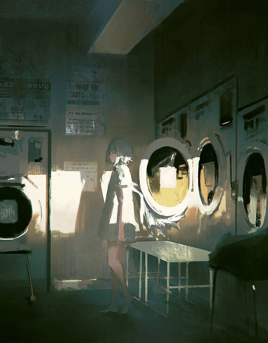 光在他笔下是有情绪的。不同色调的光影切割着画面,场景常常一半在暗处,一半在光里。