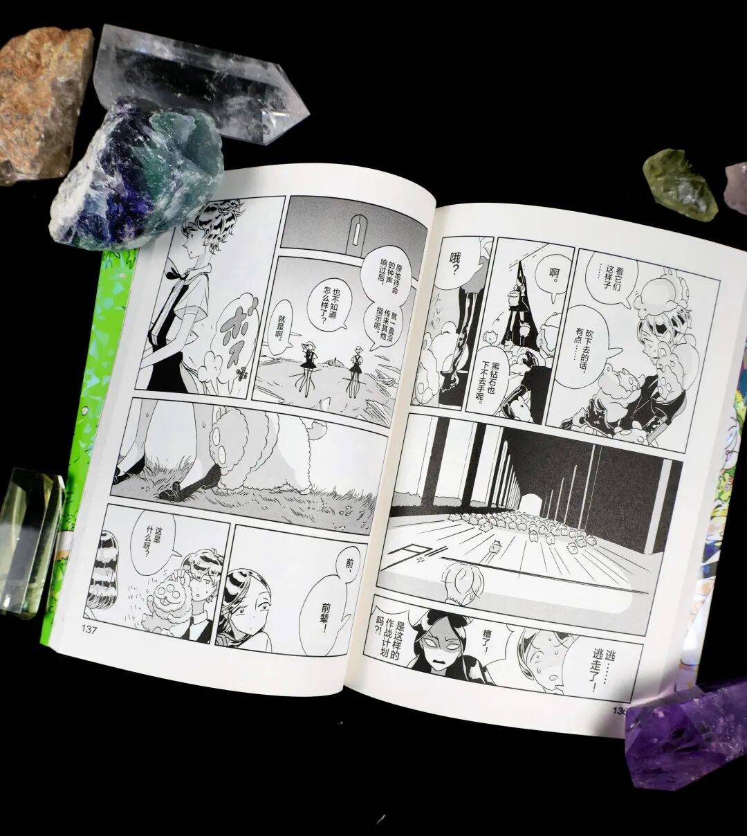 不过,面临破碎与重构的不仅仅是磷叶石。在这一辑,你还将见证表层剥落消逝的幽灵水晶、做出自毁行为的金刚老师、用断面作为武器的钻石、由不同年代的碎片来唤醒的帕帕拉恰……