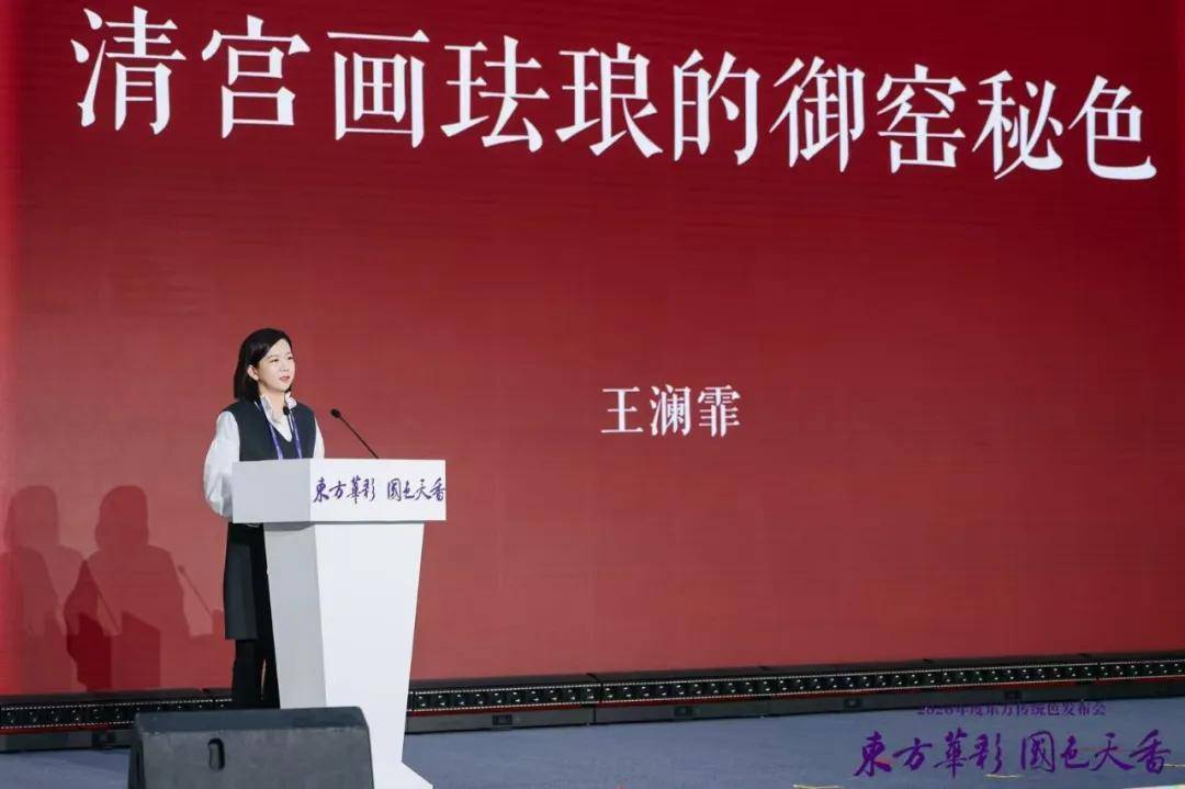 中央美术学院国际学院色彩与材料研究中心负责人王澜霏以“清宫画珐琅的御窑秘色”为主题,揭秘了珐琅彩瓷“预制、极难、极少”的顶级工艺,目前团队已成功复刻十余种珐琅彩瓷颜色。