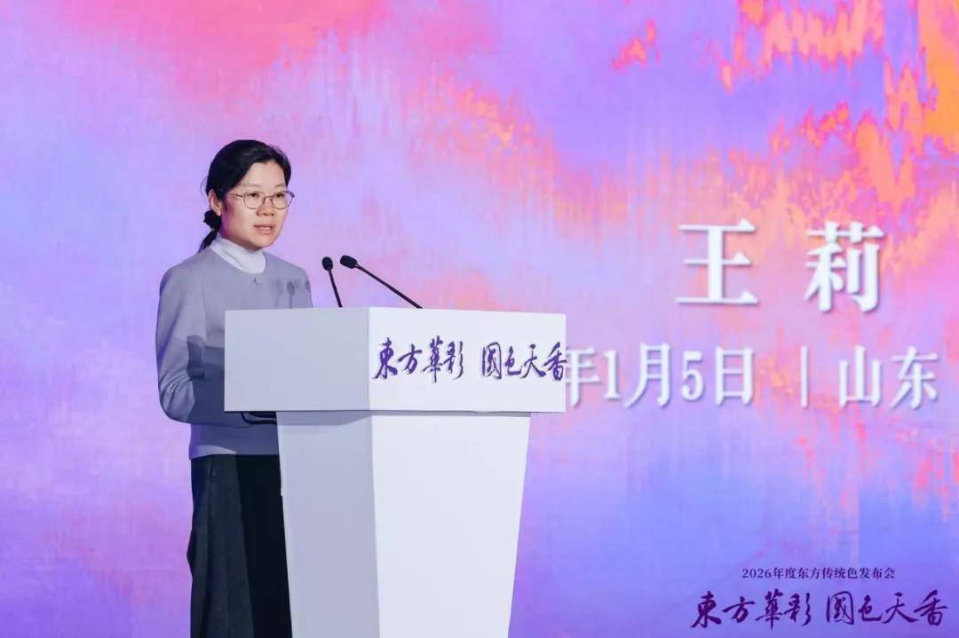 王莉回顾,两年前的三亚海棠湾,表征春意盎然的 “缃叶色” 作为 2024 年度东方主题色发布;去年的广州艺术馆,承载千年底蕴的 “绛纱色” 成为 2025 年度传统色;如今在齐文化故里,跨越 2600 多年历史记忆的 “齐紫”,接过传承的接力棒,成为 2026 年度东方传统主题色。她介绍,过去两年,在茅台的支持下,学者团队深入八大类目开展色彩采集与复原,建立起涵盖三百余种色彩的数据库,推出十余组专题色卡,让传统东方色彩变得可传播、可复制、可再生,为中华文明保存了一份可溯源、可迭代的视觉遗产。